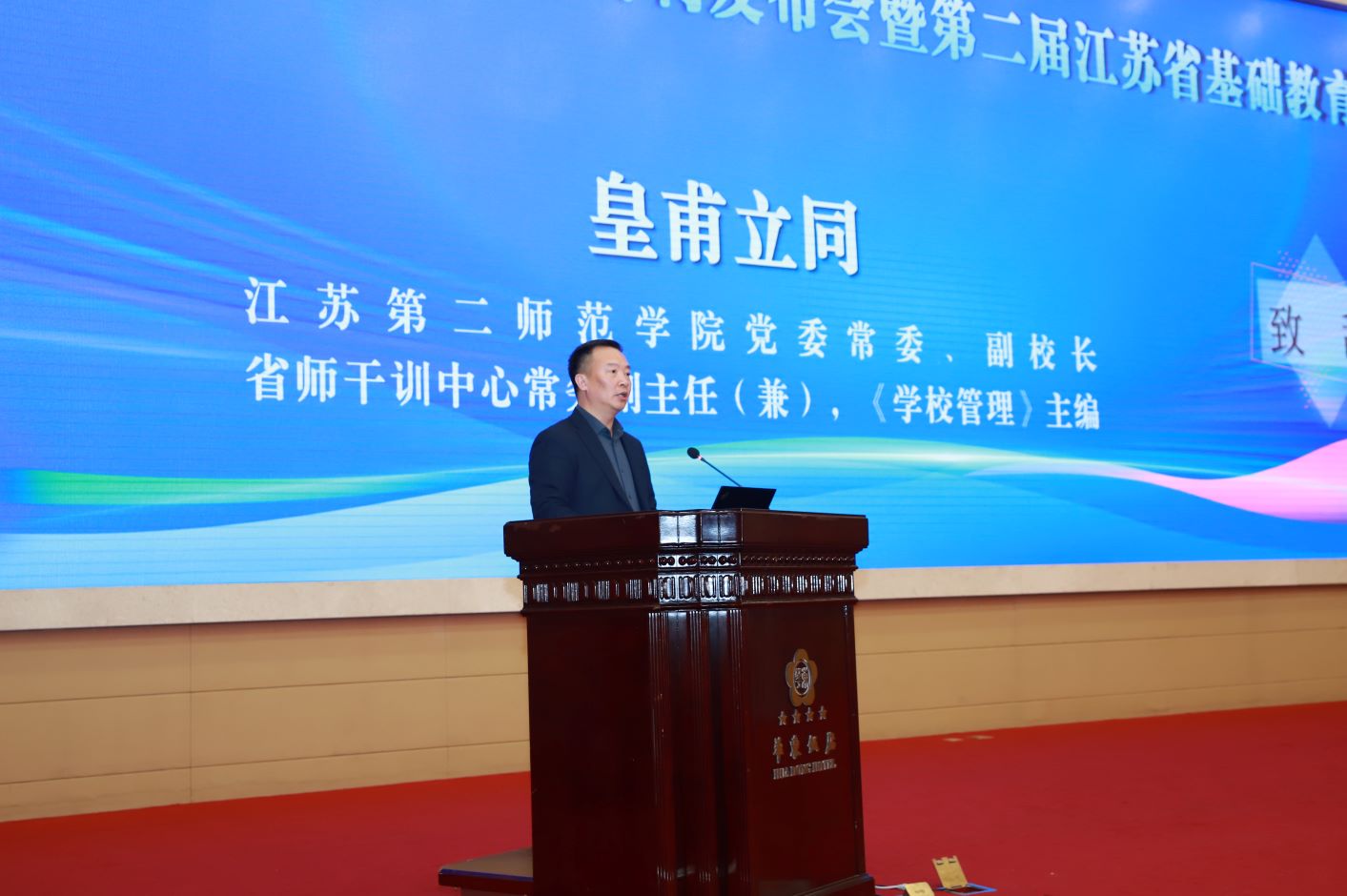 江苏省教育学会副会长兼秘书长马斌,江苏第二师范学院党委常委、副校长、省师干训中心常务副主任(兼)、《学校管理》主编皇甫立同,江苏省教育科学研究院党委副书记王金山,上海教育出版社副社长庄晓明及高校教育界专家代表出席会议。各大市教师发展学院负责同志、各县(市、区)教师发展中心负责同志、我省第二期教育家型校长培训班校长学员、通联员、学术支持单位代表近200人参加本次活动。活动由江苏省师干训中心副主任陈玉乔主持。