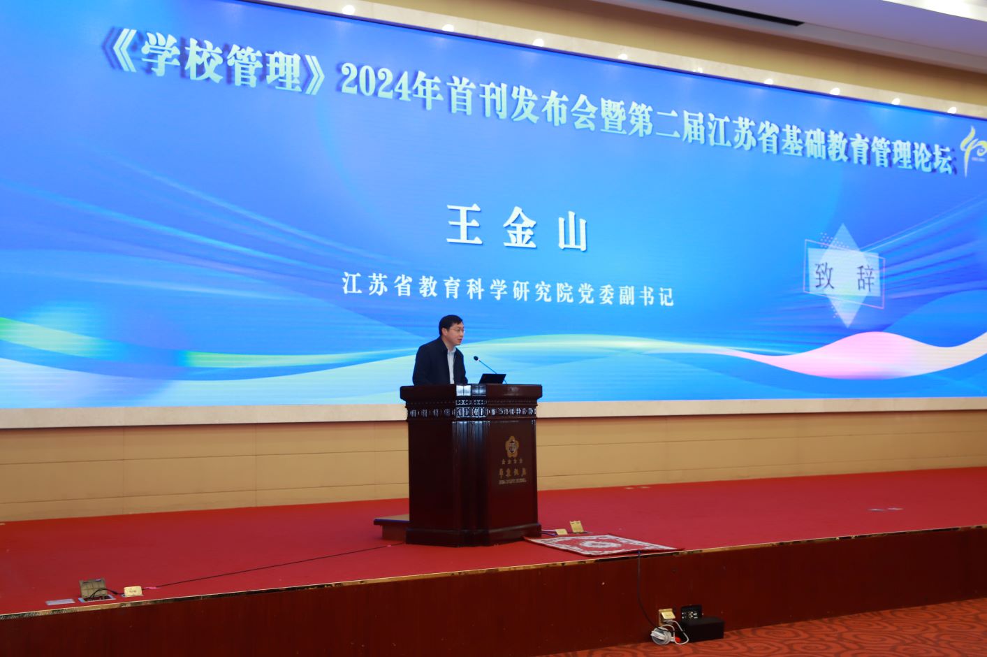 王金山发表致辞,指出《学校管理》立足基础教育,始终关注和引领基础教育学校管理的热点和难点问题研究,介绍和推广各地先进治校理念、办学经验和文化特色,在江苏基础教育届享有美誉。在新的发展阶段,省教科院与江苏第二师范学院有基础、有条件、更有动力创新合作机制,转化优势互补,推进资源共享,在互惠共赢的基础上实现共同发展,为高标准建设教育强省做出贡献。