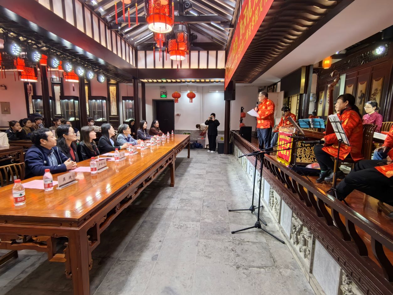 4月2日,我校在甘家大院举办文化交流活动。校党委副书记、副校长刘继红,党委常委、副校长赵玉蓉出席,党委常委、统战部部长陈蓓,大学生艺术教育中心主任孙婷、文学院党总支书记刘莹、音乐学院党总支书记尹彬成、副书记王音以及音乐学院师生代表参加本次活动。