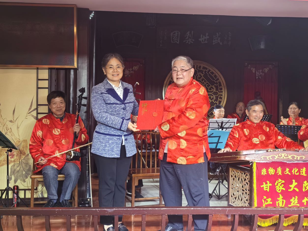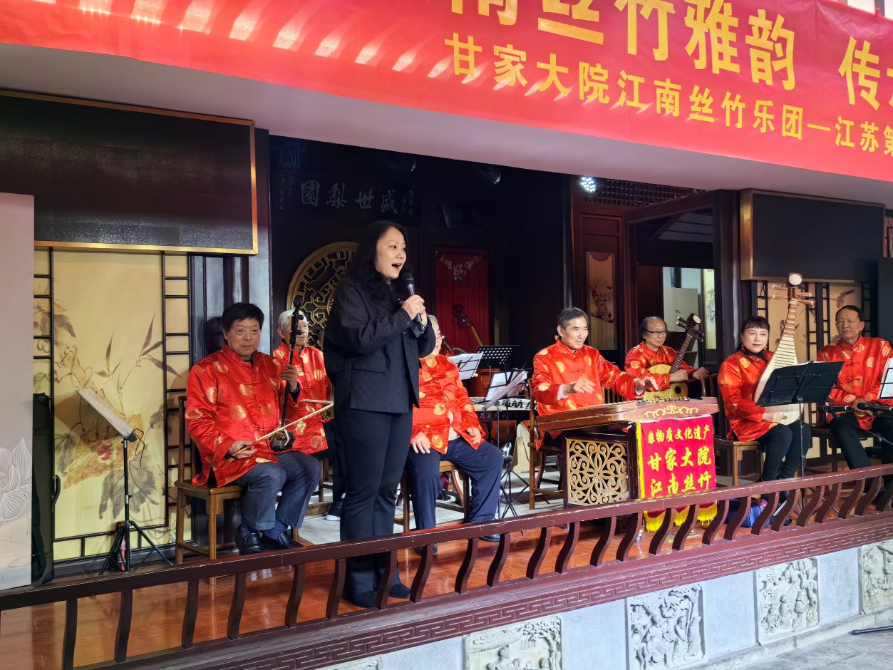 随后,甘家大院江南丝竹乐团为大家演奏了春江花月夜、采茶舞曲等脍炙人口的七首乐曲。