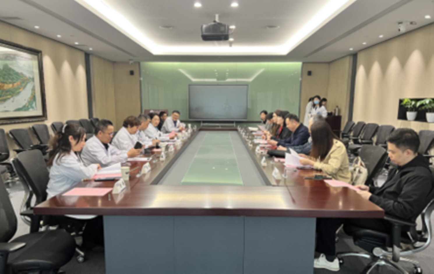 生化学院院长蒋功成,学前学院院长田燕,美术学院院长路明,省人医第一临床医学院党委书记孙波,副总会计师汪丹梅,康复医学中心主任、南医大康复医学院院长陆晓,总务处(基建处)处长、南医大康复医学院副院长李勇强,双方相关职能部门、专业负责人等参加座谈。