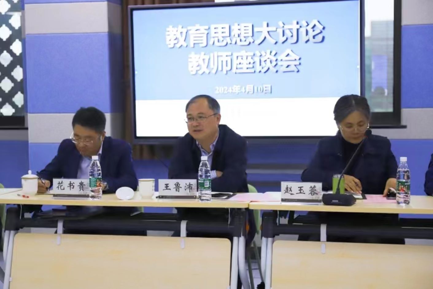 王鲁沛认真听取了教师代表的发言,就教师们关心的问题进行了探讨交流,并表示学校开展教育思想大讨论,将坚持解放思想、坚持问题导向、坚持集思广益、坚持实效为先,引导广大师生更新理念、提振精神、凝聚共识,全面提升人才培养质量,推动学校高质量发展。
