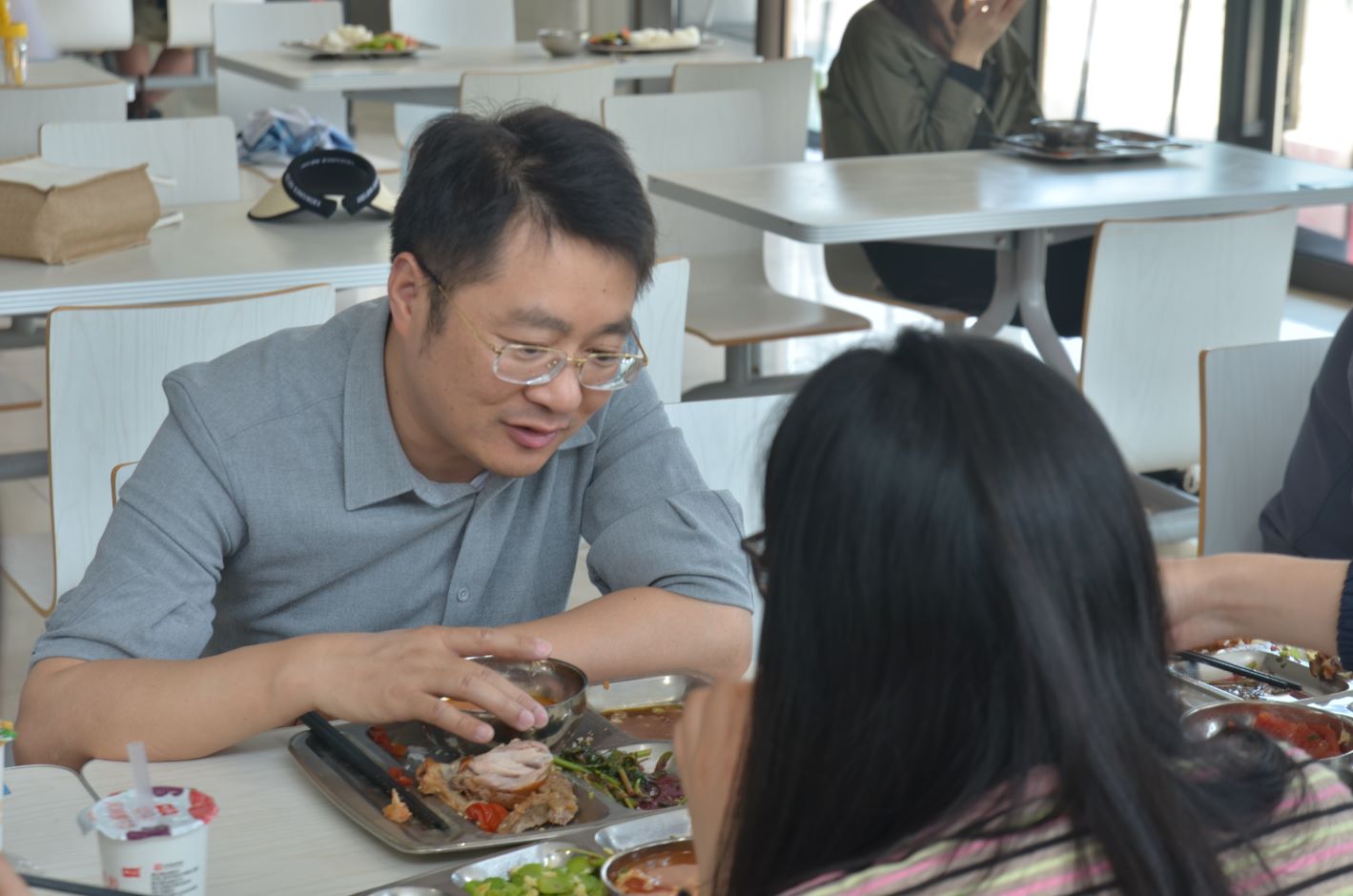 大家边吃边聊,轻松愉快,不时有笑声传出。同学们反馈的关于转专业流程、素质综合测评标准、宿舍安排和调换、励志奖学金评定标准、课表编排等事宜,相关部门负责人进行现场解答说明,得到了同学们的认可。