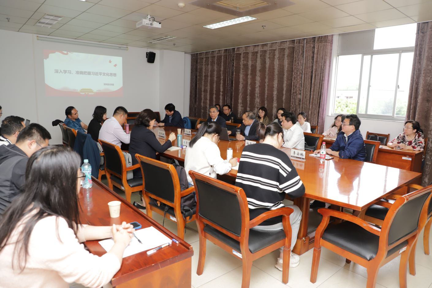 4月29日下午,我校在草场门校区教科研楼召开习近平文化思想专题报告会,邀请中国社会科学院马克思主义研究院原院长邓纯东研究员和南京师范大学马克思主义学院二级教授王永贵作专题报告,校党委常委、副校长梅景辉教授出席并主持报告会,宣传部、马克思主义学院负责人和教师参加专题报告会。