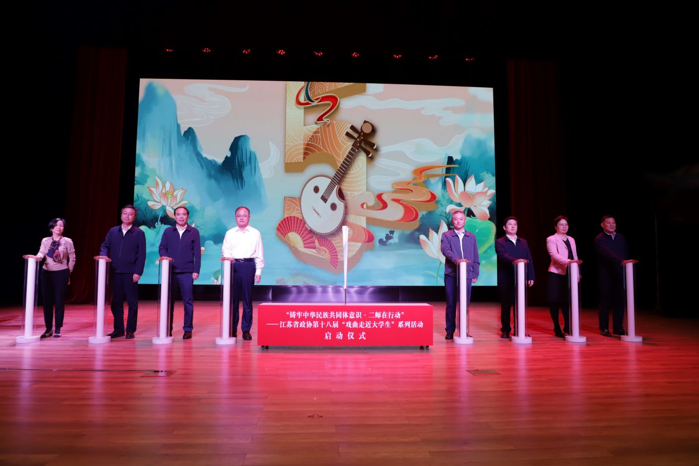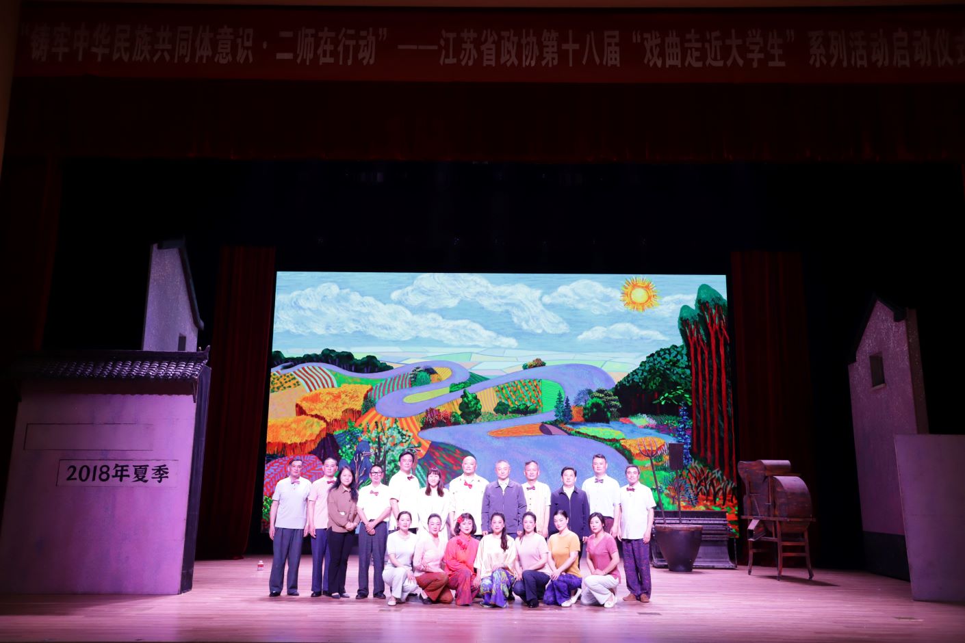 孙越、邓飞、周亚君、袁建华、侯加友、徐宝军、高明芳、王鲁沛一同登台,共同启动“铸牢中华民族共同体意识·二师在行动”——江苏省政协第十八届“戏曲走近大学生”系列活动。