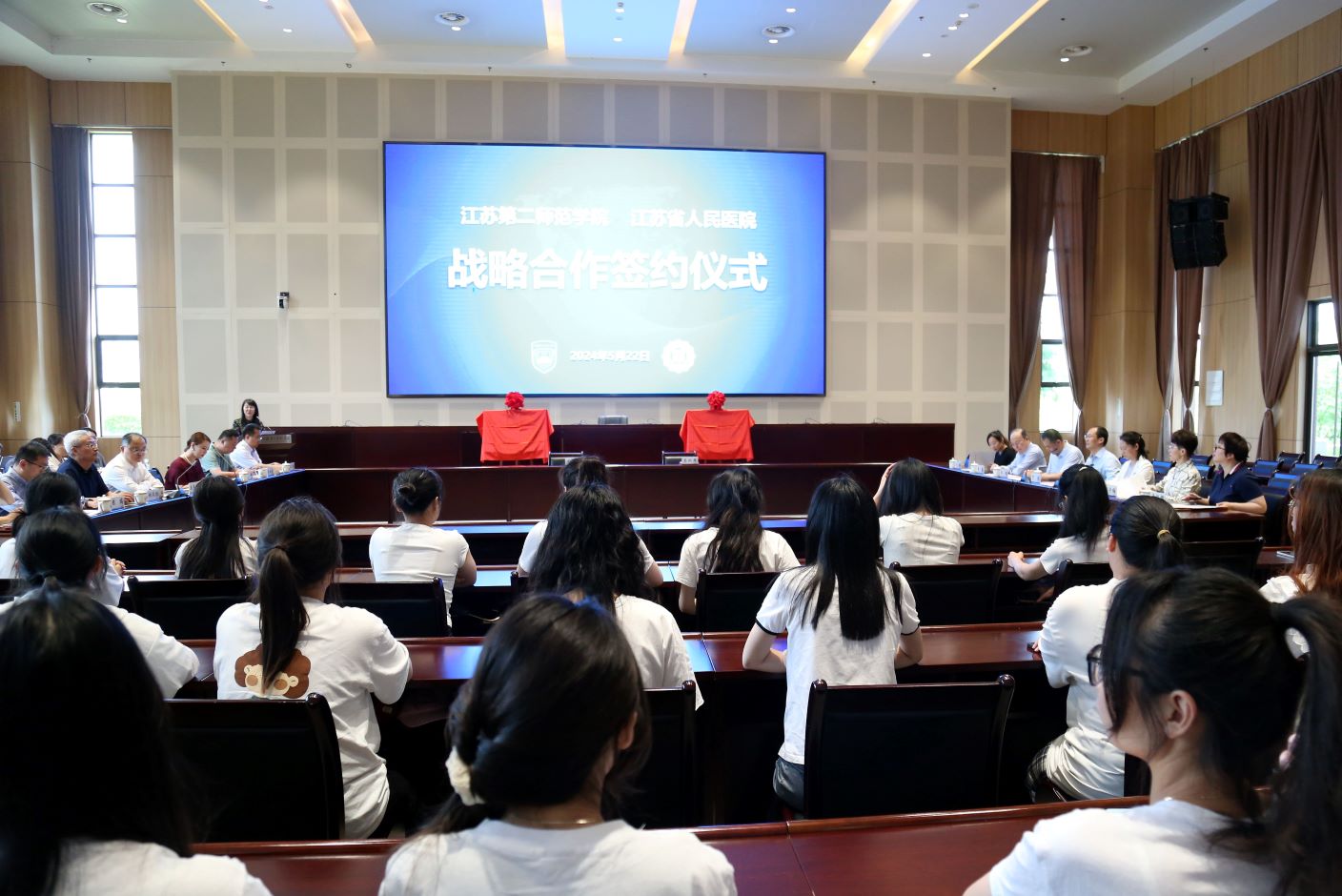 双方有关职能部门负责人和师生代表参加仪式。仪式前,省人医领导一行参观了江苏二师教师教学发展中心和教育部中华优秀传统文化传承创新基地。