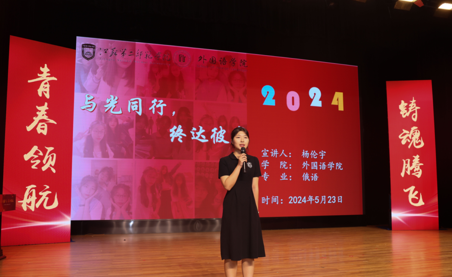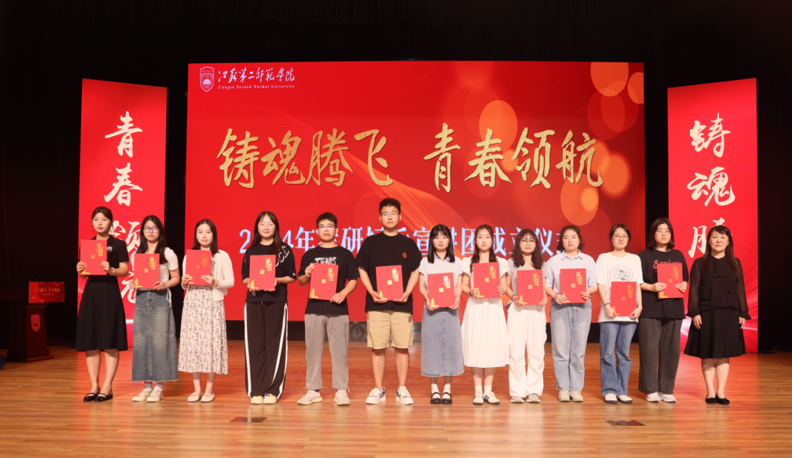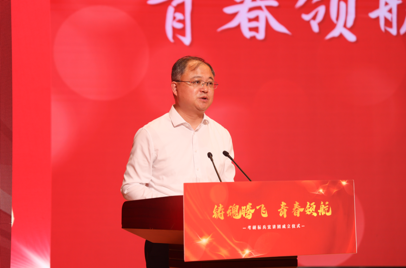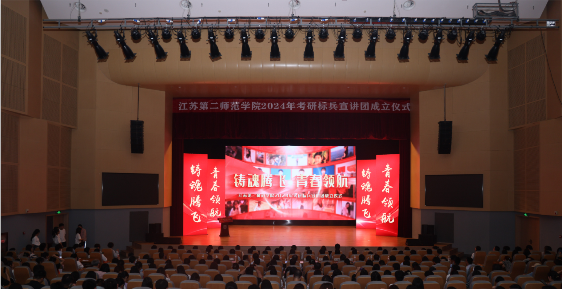 为贯彻落实我校第三次党代会会议精神,推进学生工作“铸魂腾飞”行动计划深入开展,充分发挥优秀学子在考研方面的榜样引领作用,营造健康向上的学习氛围。5月23日晚,江苏第二师范学院2024年考研标兵宣讲团成立仪式在石湫校区尚美楼剧场举行。校党委书记王鲁沛,党委副书记、副校长刘继红,副校长花书贵,党委常委、宣传部部长李安林,党委常委、统战部部长陈蓓,此外,学生工作处、团委、教务处、教学质量监测与评估处、招生就业处、后勤与基建处等相关职能部门负责人,各学院(学部、书院)党政工作负责人、2025届毕业生辅导员、2025届学生代表出席活动。