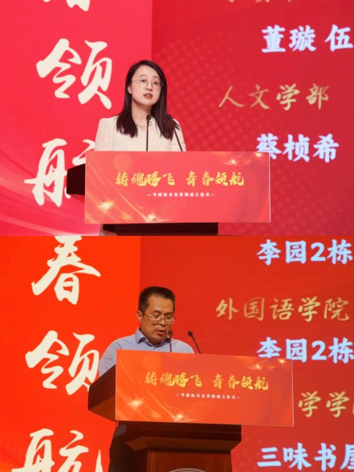 学工处处长刘姝、教务处处长仇方道分别宣读《江苏第二师范学院2024年考研标兵宣讲团成员名单》和《江苏第二师范学院2024年考研宿舍名单》。