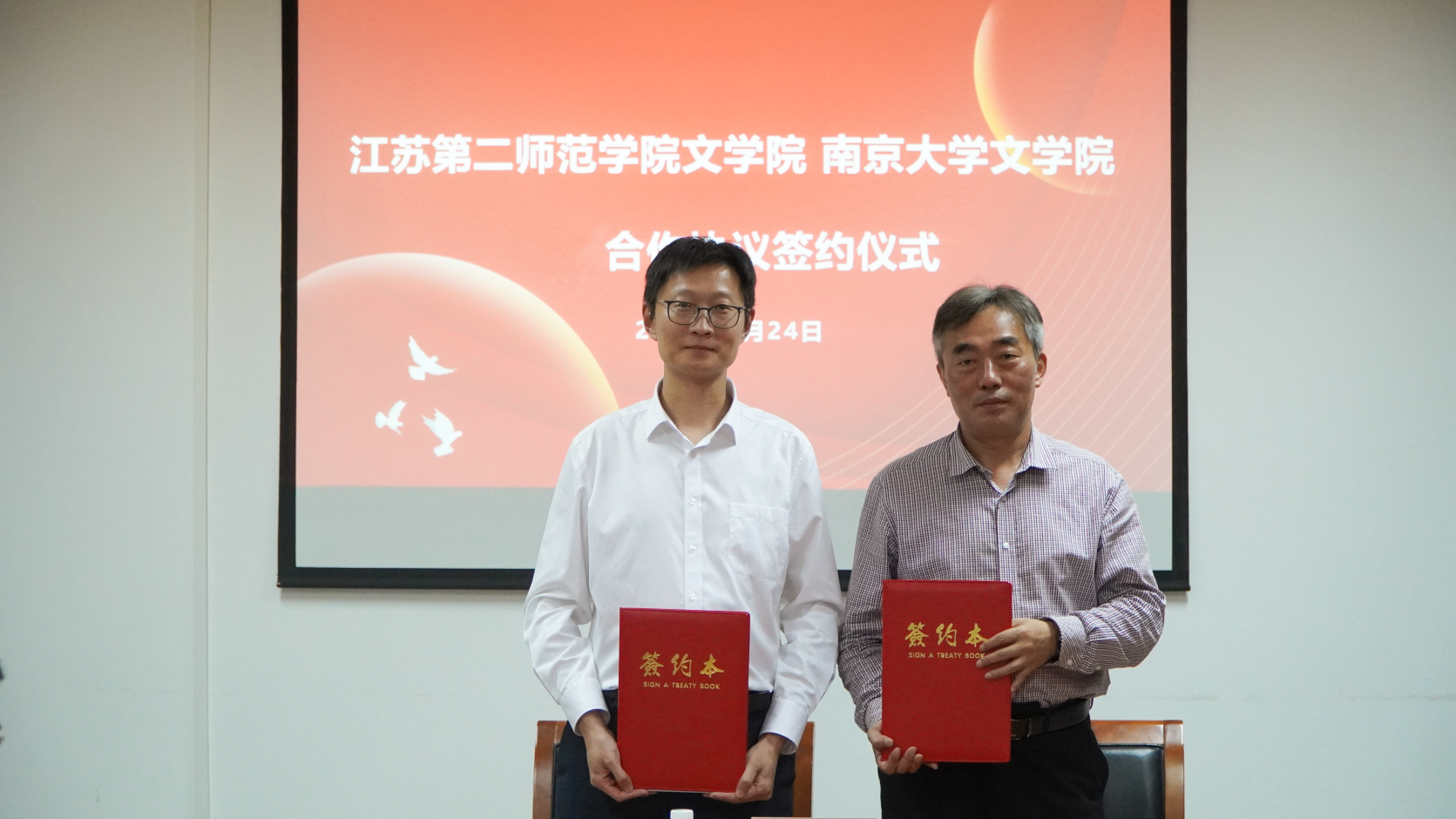 5月24日下午,我校文学院与南京大学文学院举行合作协议签约仪式。南京大学文学院党委书记倪蛟、院长董晓,我校党委常委、副校长赵玉蓉,人文学部主任冯保善,文学院党总支书记刘莹、副院长赵敬鹏、副院长陈进武,以及文学院青年教师代表、辅导员教师代表、学生代表,出席签约仪式。签约仪式由刘莹主持。