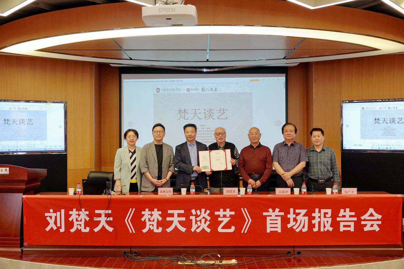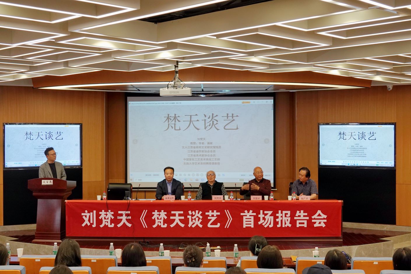 5月27日下午,应我校美术学院邀请,江苏省政府文史研究馆馆员、江苏省省作家协会会员、江苏省美术家协会会员、中国首批工艺美术高级工艺师、东南大学艺术系特聘授课教授刘梵天老先生在草场门校区现代教育技术楼楼报告厅为美术学院师生做了首场系列讲座《梵天谈艺》。我校党委常委、副校长皇甫立同,原校党委书记方国才,原美术学院院长张广才,美术学院院长路明,党支总书记王玲玲,党总支副书记孙仕荣和美术学院部分师生参加了本次讲座,讲座由美术学院院长路明主持。