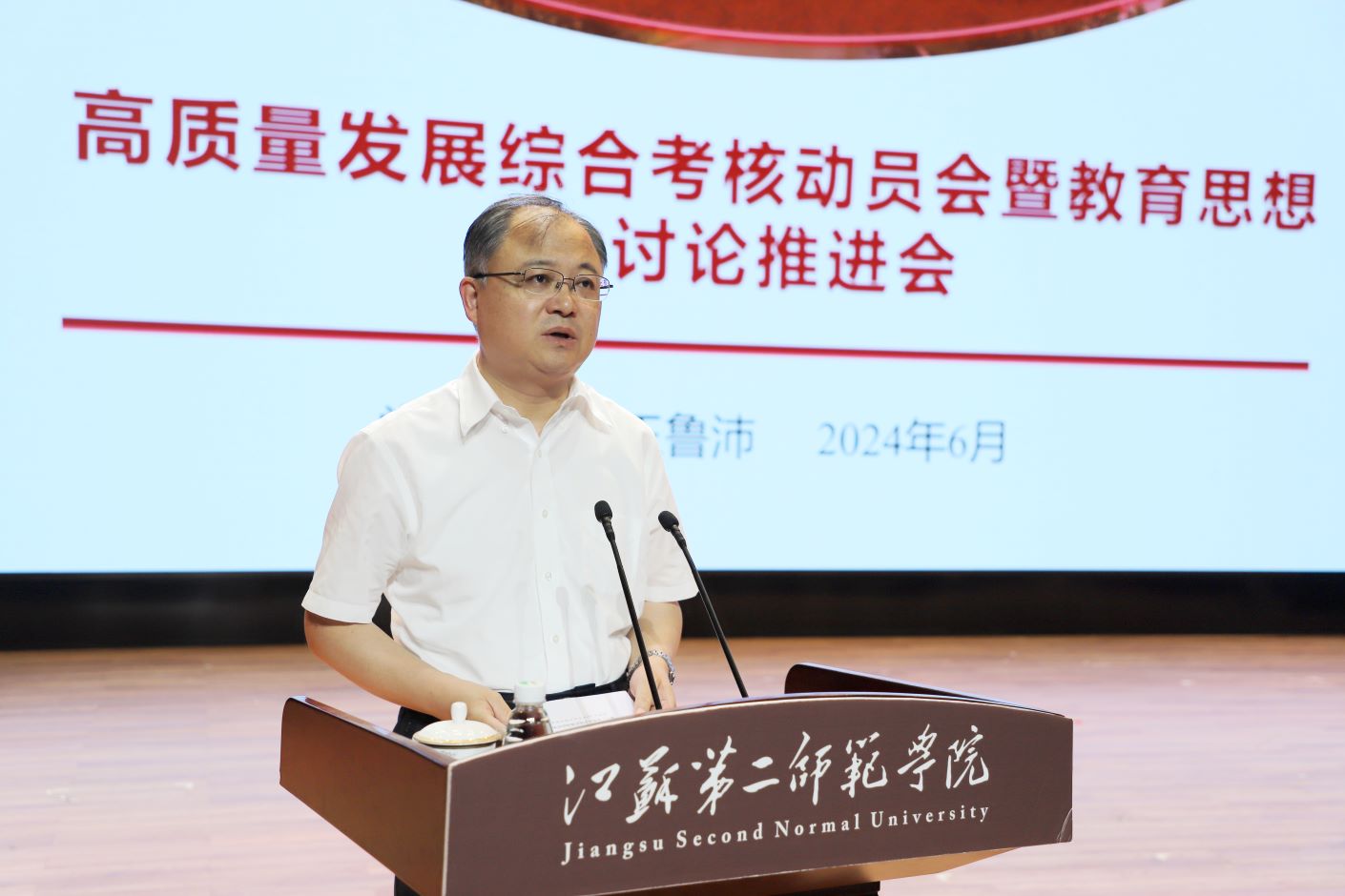 王鲁沛就学校高质量发展工作提出三点意见:一要全面认识我校面临的形势。在经济社会人口发展结构之变带来教育之变的大背景下,教育承担着支撑引领高水平科技自立自强和服务发展新质生产力的重任,作为地方性师范院校,我们必须主动识变、求变、应变,加大学科专业的前瞻性布局,不断提高人才培养质量,提高内涵建设水平,努力回答好“强国建设、二师何为”的时代命题。二要以“校考”为抓手,有机贯通衔接考核和高质量发展重大任务。要加强顶层设计,围绕学校高质量发展重点工作重大任务,做好前瞻性、整体性、系统性谋划,“立足今年,谋划三年,思考长远”,制定“1+N”系列行动方案;改革校内考核办法,强化争先进位目标导向,强化考核结果运用,做好“后半篇文章”;以党纪学习教育为契机,激励担当作为,着力营造激发干事创业积极性和责任感的制度文化。三要坚持问题导向、目标导向,坚持系统思维、战略思维,深入开展教育思想大讨论。要进一步动员发动,全员讨论、全程讨论、全面讨论,及时交流总结大讨论成果,夯实高质量发展和重大任务落实的思想基础、工作基础。