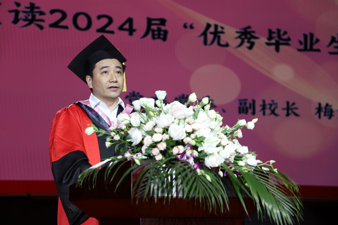 党委书记王鲁沛,校长徐国华,党委副书记、副校长刘继红,纪委书记崔燕,副校长姚振标、皇甫立同、赵玉蓉、梅景辉、花书贵出席仪式。校学位委员会委员、各职能部门负责人、各学院、学部、书院负责人、学生工作负责人、毕业班辅导员、班主任、校友代表、毕业生亲友代表等参加仪式。仪式由刘继红主持。