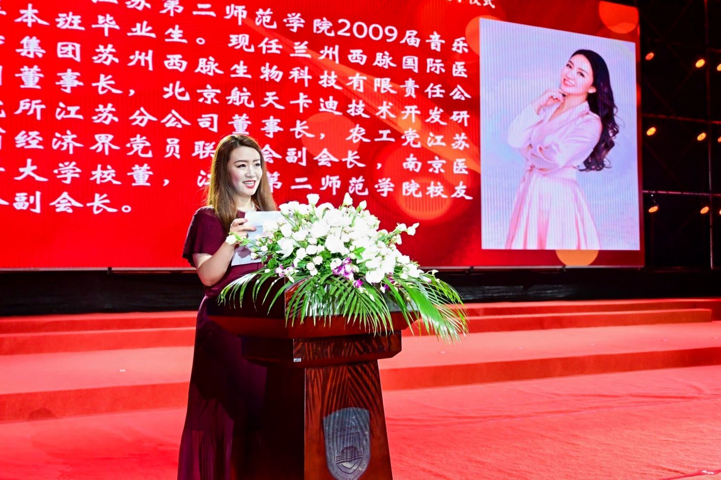 江苏航科卡迪医疗器械有限公司董事长杨云作为校友代表发言。她回顾了在学校求学的经历,希望同学们不忘江苏二师校训精神,牢记老师们的嘱托与教诲,成长为对国家、社会有用的栋梁之才。