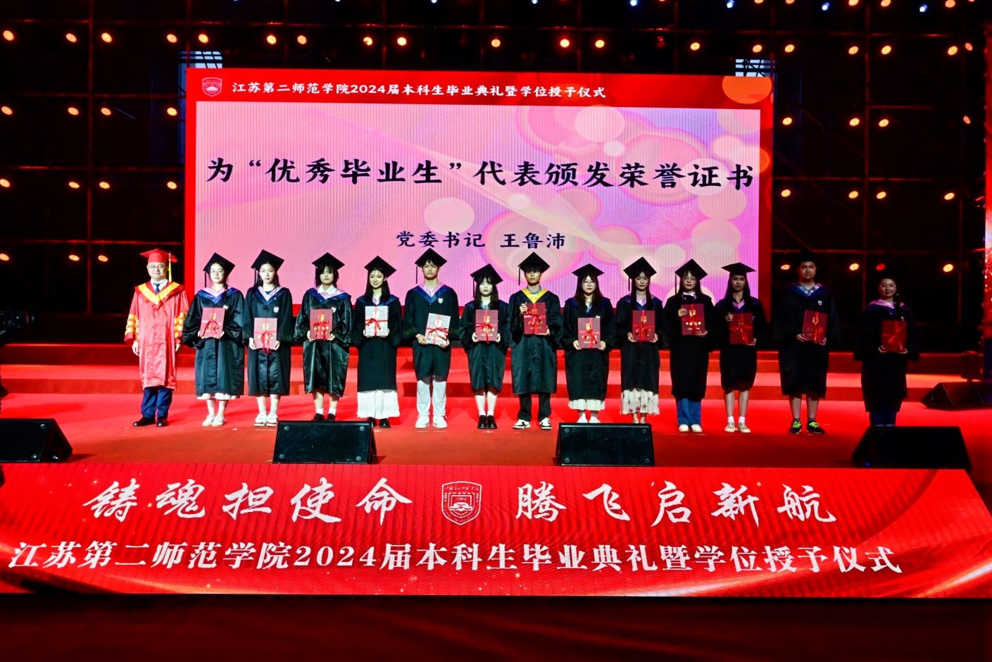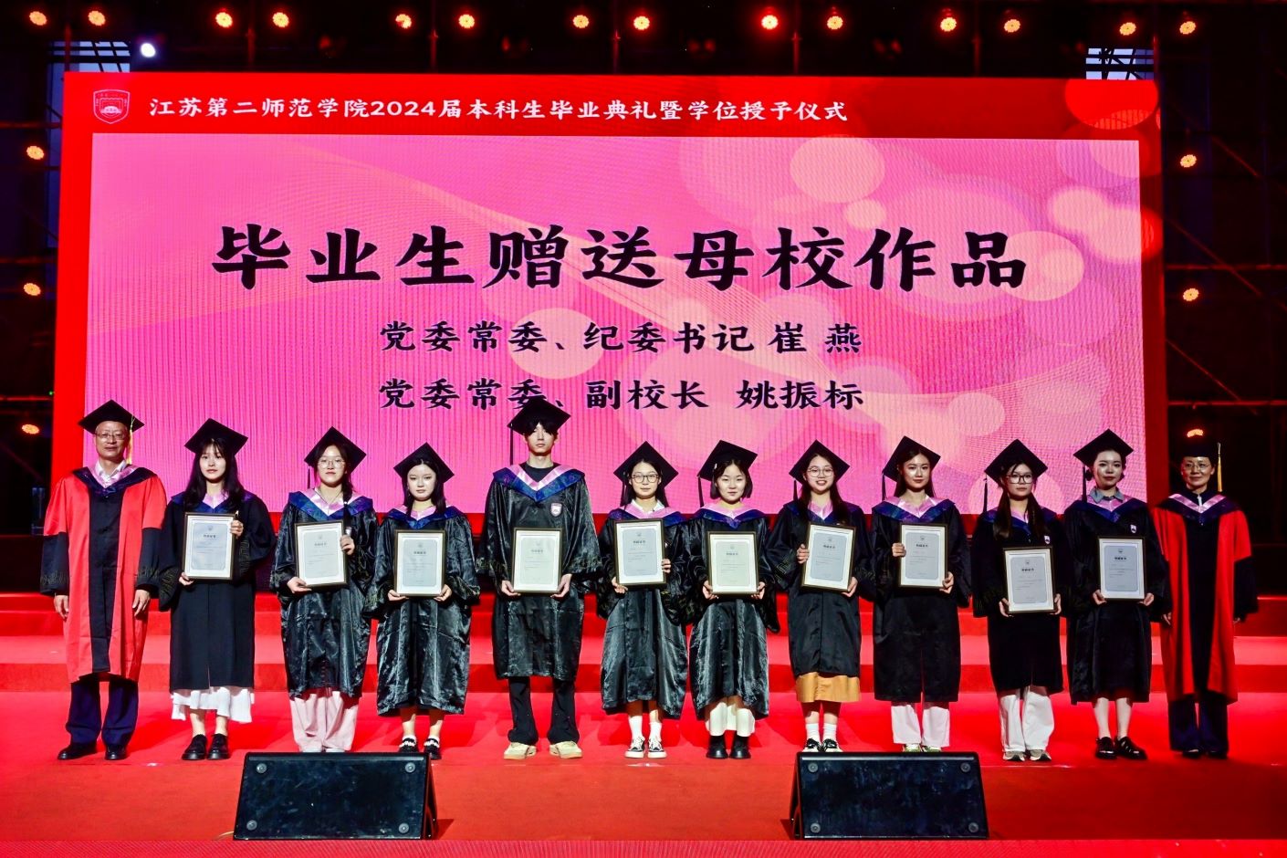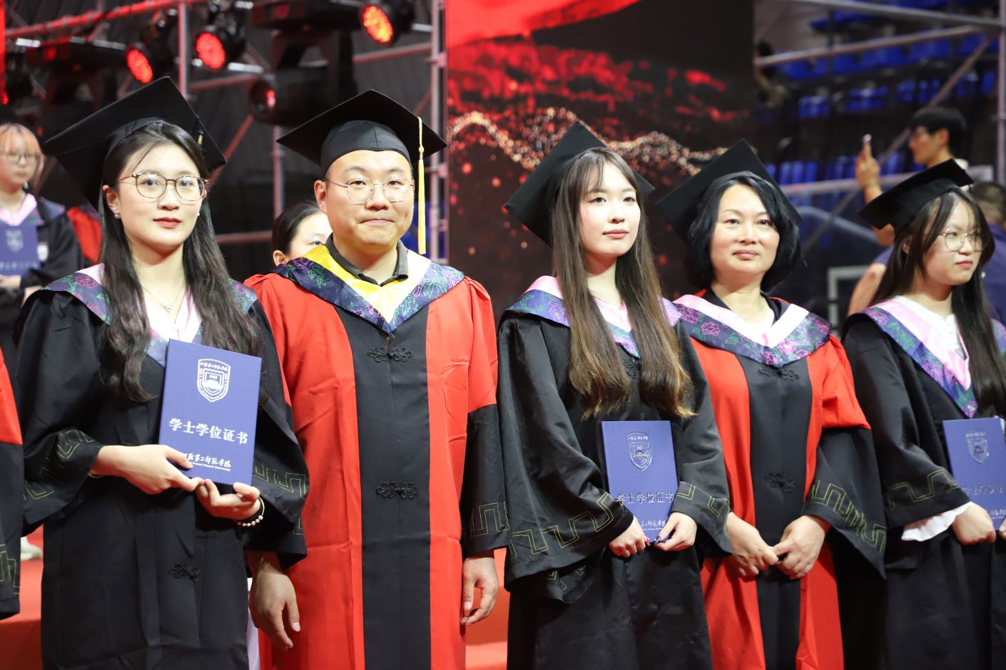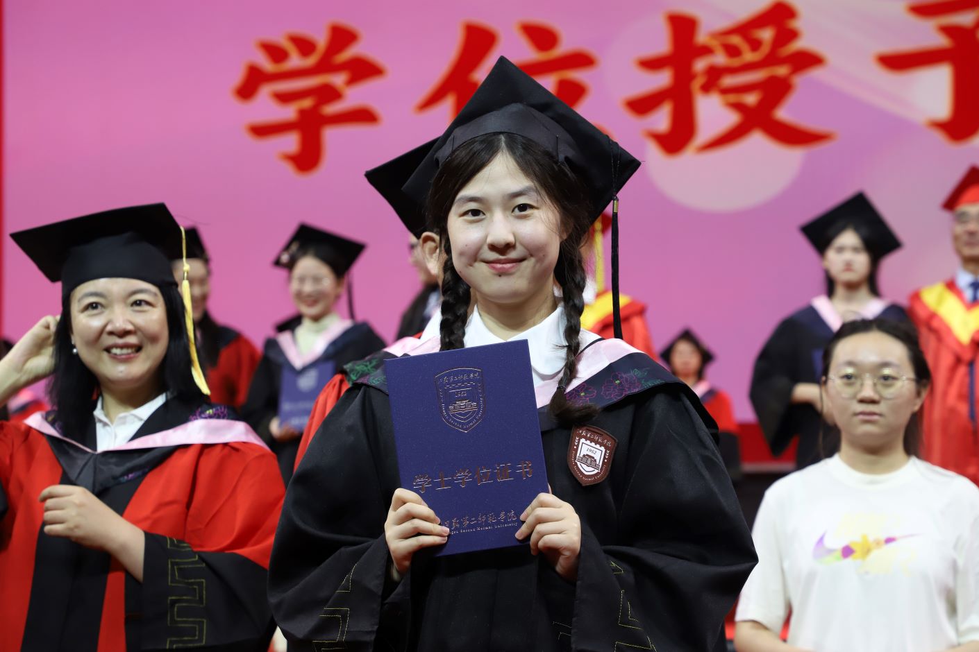 毕业典礼后,举行了2024届毕业生学士学位授予仪式。校领导、二级学院负责人、主要职能部门负责人为全体毕业生一一拨穗、颁发学士学位证书。