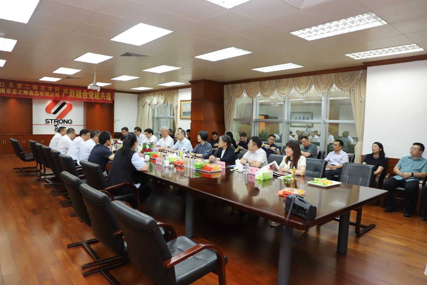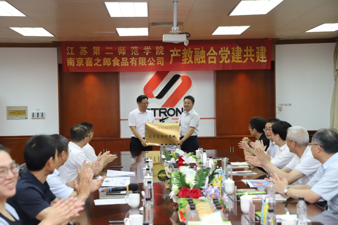 在座谈会上,副校长梅景辉、溧水经济开发区管委会主任徐日喜、南京喜之郎食品有限公司总经理陈正杰分别介绍了有关情况,并表示要进一步加强“校地企”沟通协作,推动产学研用深度融合。学校生命科学与化学化工学院与南京喜之郎食品有限公司开展了融合共建活动,签署了党建共建协议,副校长花书贵向公司颁发“江苏第二师范学院大学生实践基地”铜牌。王鲁沛在讲话中表示,溧水区是全市唯一制造业高质量发展试验区,南京喜之郎食品有限公司自主研发改造了数字智能制造MES系统,实现了传统产业转型升级。他指出,发展新质生产力基础在教育,教育现代化要先行,要因地制宜发展新质生产力,以国家重大战略需求和地方实际需要为导向,培养创新人才,不断塑造发展新动能、新优势,回答好发展新质生产力、建设教育强国的二师答卷。