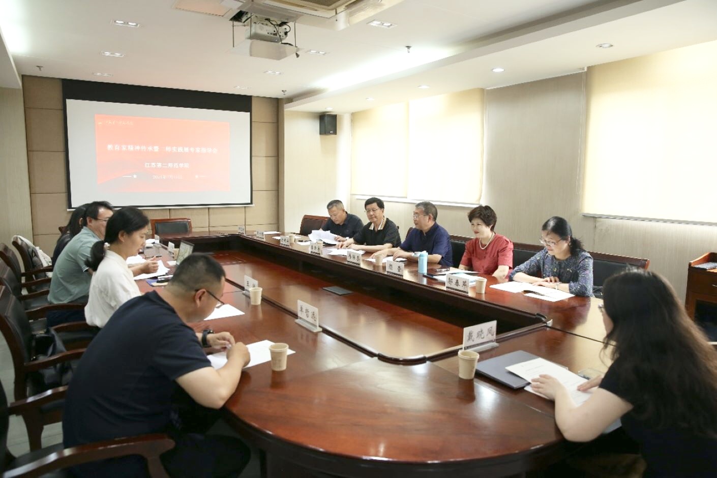 7月17日,“大国良师——教育家精神传承二师实践展”在草场门校区教科研楼505会议室举行。校党委宣传部邀请江苏省教育科学研究院、中国教育报、江苏教育报、《江苏教育研究》期刊社、学校职能院部负责人以及退休教师代表等专家学者,就“教育家精神传承二师实践展”主题主线、陈列展览内容与形式等进行了充分而深入的讨论。研讨会由党委常委、宣传部部长李安林主持。