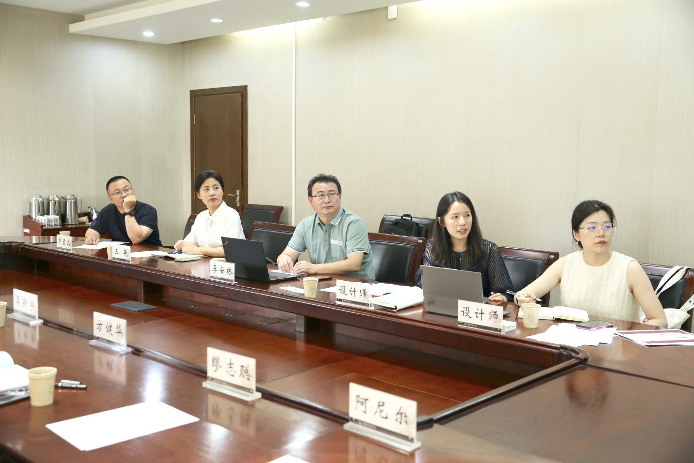党委宣传部副部长王艳向与会人员介绍了展览工作主题及板块框架的基本情况,设计团队从展览功能构成、设计理念、平面布局、空间效果、展出规划等方面进行详细介绍。
