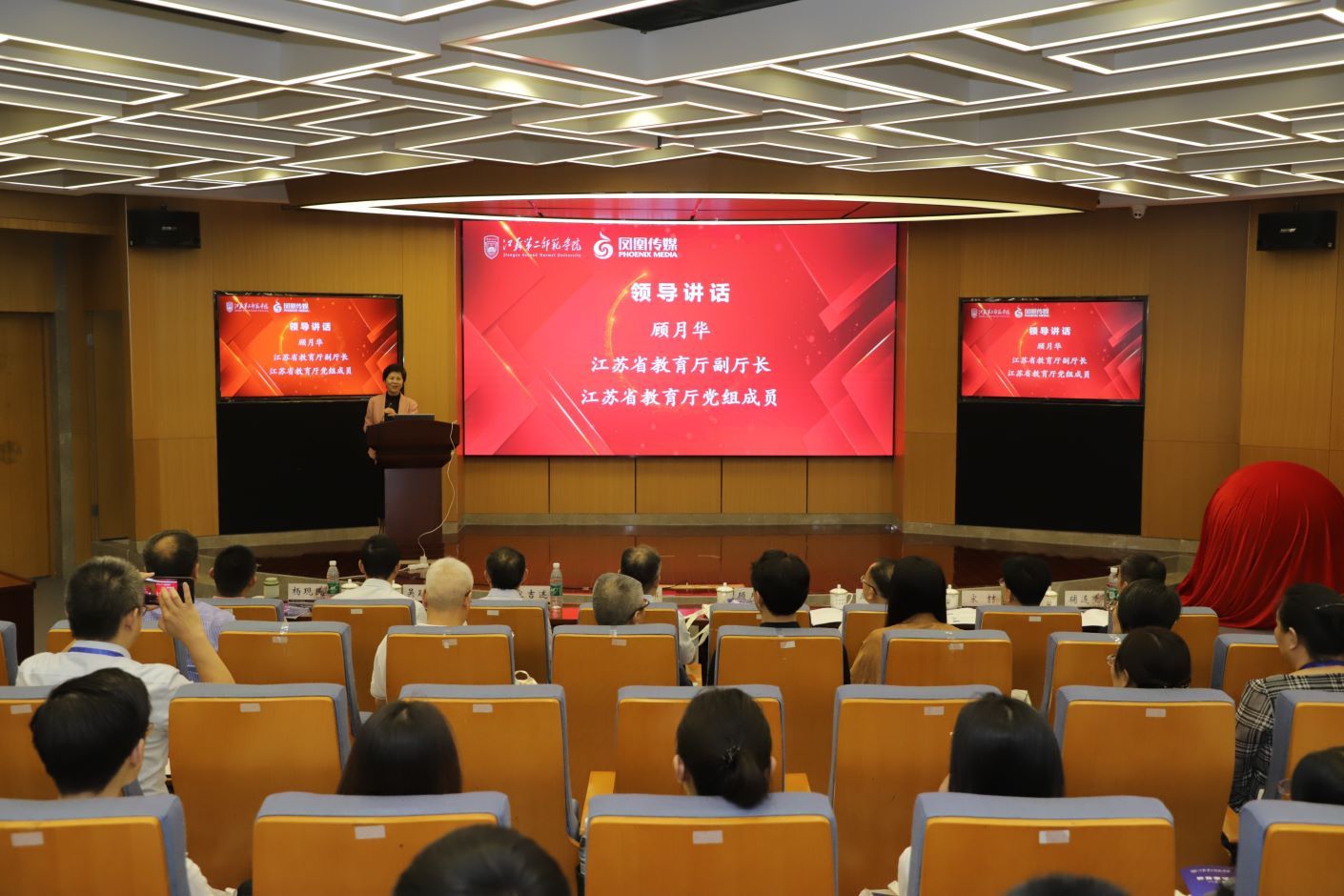 8月20日,“教育家精神时代实践——人工智能与未来师范教育研讨会”在我校举行。会议以专家报告、经验分享等形式展开,深入探讨教育家精神在新时代的实践路径以及人工智能如何引领未来师范教育的发展。江苏省教育厅副厅长、党组成员顾月华,江苏第二师范学院党委书记王鲁沛在开幕式上致辞,江苏第二师范学院党委常委、副校长皇甫立同主持开幕式。