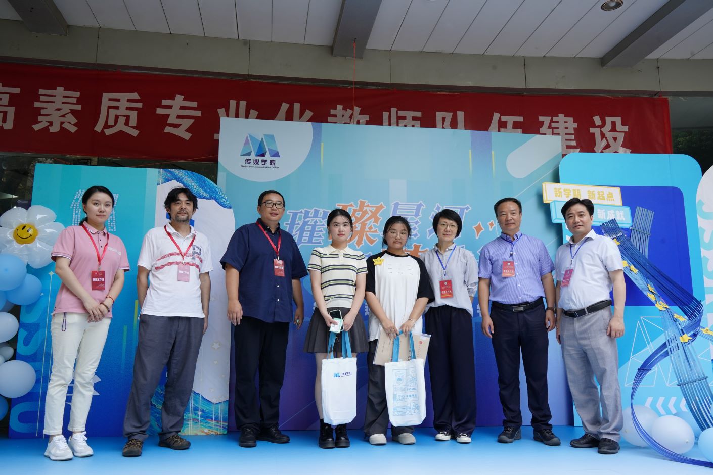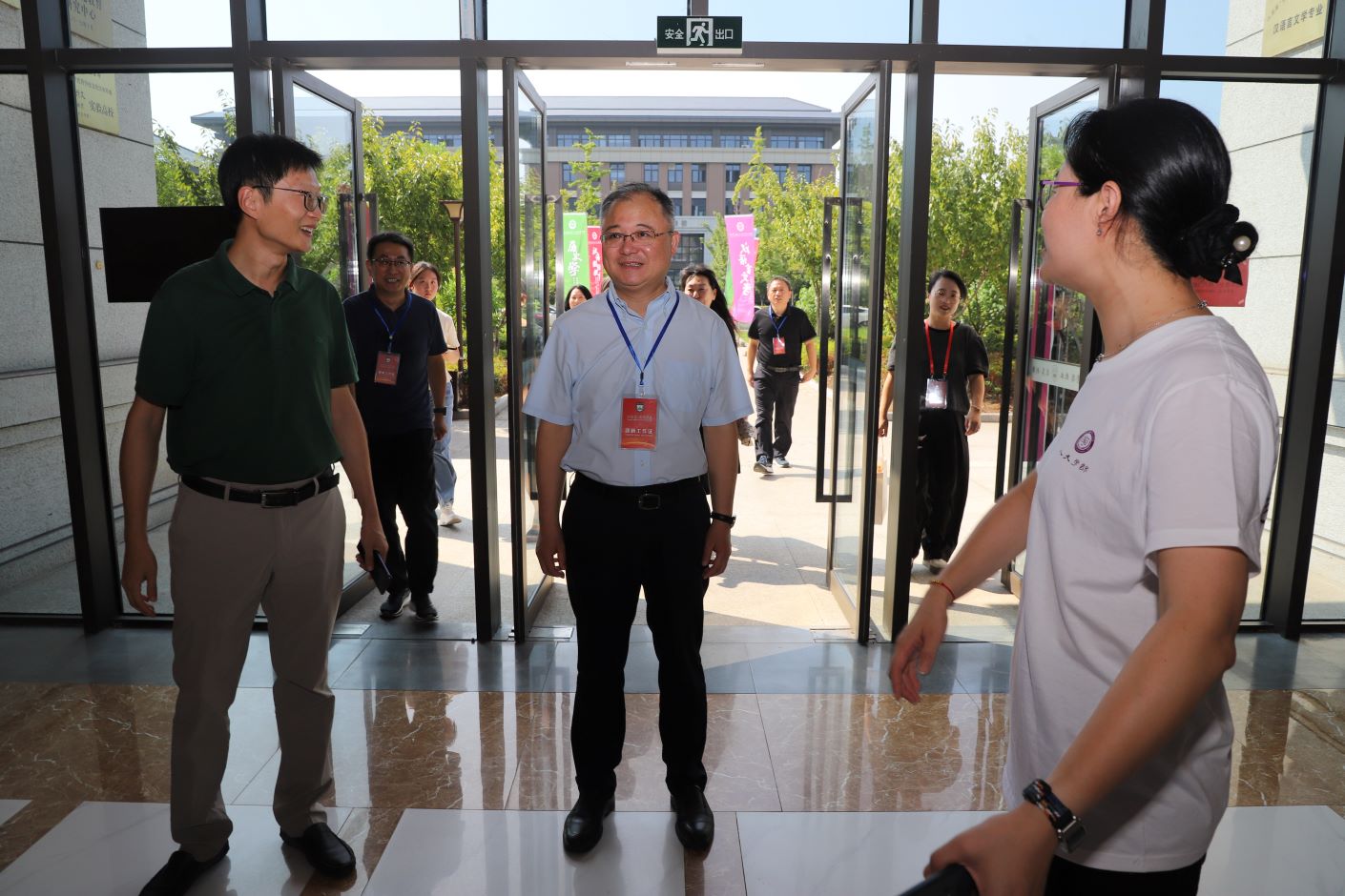 迎新当日,恰逢教师节前夕。由党委宣传部主办的“大国良师 弘扬践行教育家精神主题展”即将开馆,王鲁沛书记勉励师生坚持以习近平新时代中国特色社会主义思想铸魂育人,为加快建设教育强国担当使命!在庆祝第40个教师节来临之际,引导激励师生深入贯彻落实习近平总书记关于教育的重要论述,以教育家精神为指引,努力成为新时代的大先生。