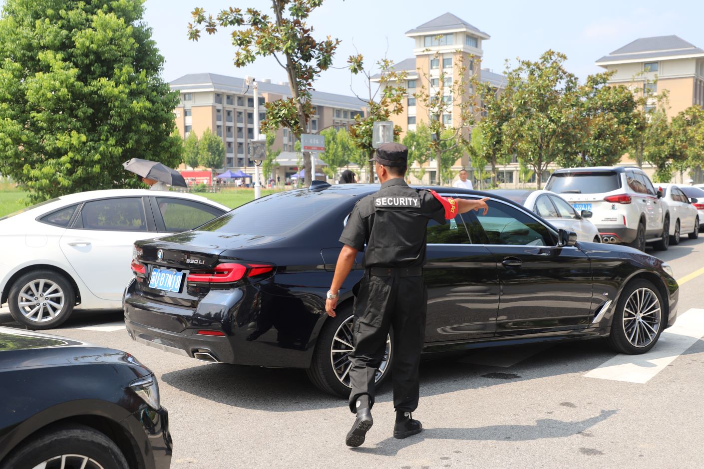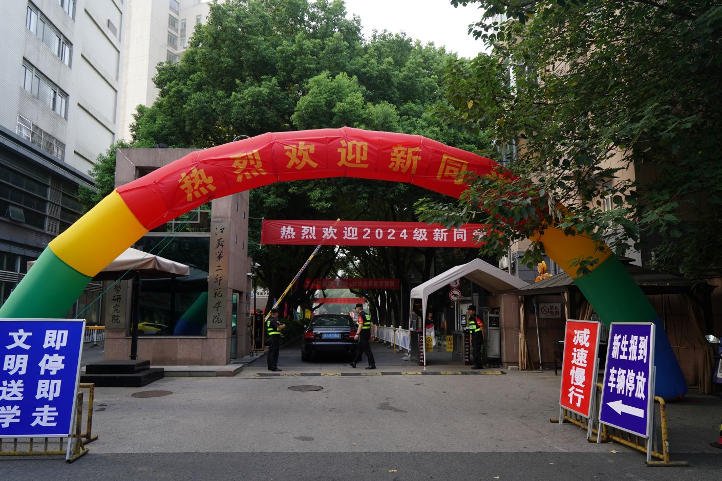 学校上下为新生入学提供全面保障和便利服务,各部门提前做好了全方位部署,各职能部门尽职尽责,用温暖、贴心的服务为新同学保驾护航。校园里的交通和治安是迎新工作的重要一环。学校保卫处派出保安队员现场指挥交通,引导他们将车辆有序停放,保障迎新工作井然有序。