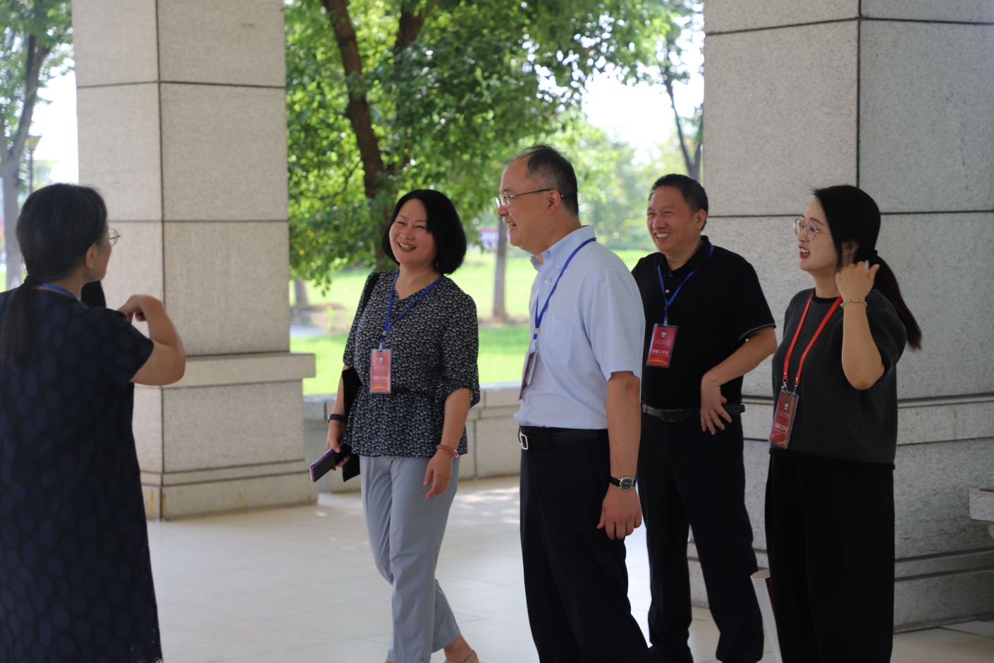 朝阳初升,在宁校领导兵分三路走访两个校区。校党委书记王鲁沛,党委常委副书记、副校长刘继红,党委常委副校长姚振标、赵玉蓉在石湫校区走访,王鲁沛、刘继红、赵玉蓉一行来到各学院迎新点,迎接新生和家长,看望慰问工作人员和学生志愿者。姚振标带职能部门负责人前往食堂、超市、学生宿舍、商学院等地走访,查看学生就餐情况,物资储备情况,了解学生入住体验等事项。各二级学院也为迎接新生的到来,根据学院文化特点,自身学科特色、用心打造迎新现场。王鲁沛一行到访计算机工程学院、生化学院、人文学部、外国语学院、崇德学院、一站式学生服务中心等迎新报到点,了解学院招生人数、生源质量、生源地、学生日常生活等信息。王鲁沛来到生化学院看到展厅摆放优秀毕业生就业去向,叮嘱:“要把“实习-毕业论文-就业”一条线打通。”来到人文学部,夸赞学院为迎新准备的文创产品,美观有创意。到崇德书院,了解学生就业和赴港澳读研情况。走访过程亲切与新生合影留念。王鲁沛书记心系校园建设,看到家长和新生在新雕刻的孔子像前合影留念,很是欣慰。孔子是中国古代伟大的思想家、教育家,他的思想影响深远,而雕刻孔子像对于江苏第二师范学院弘扬中华传统文化、传承教育家精神具有重要意义。