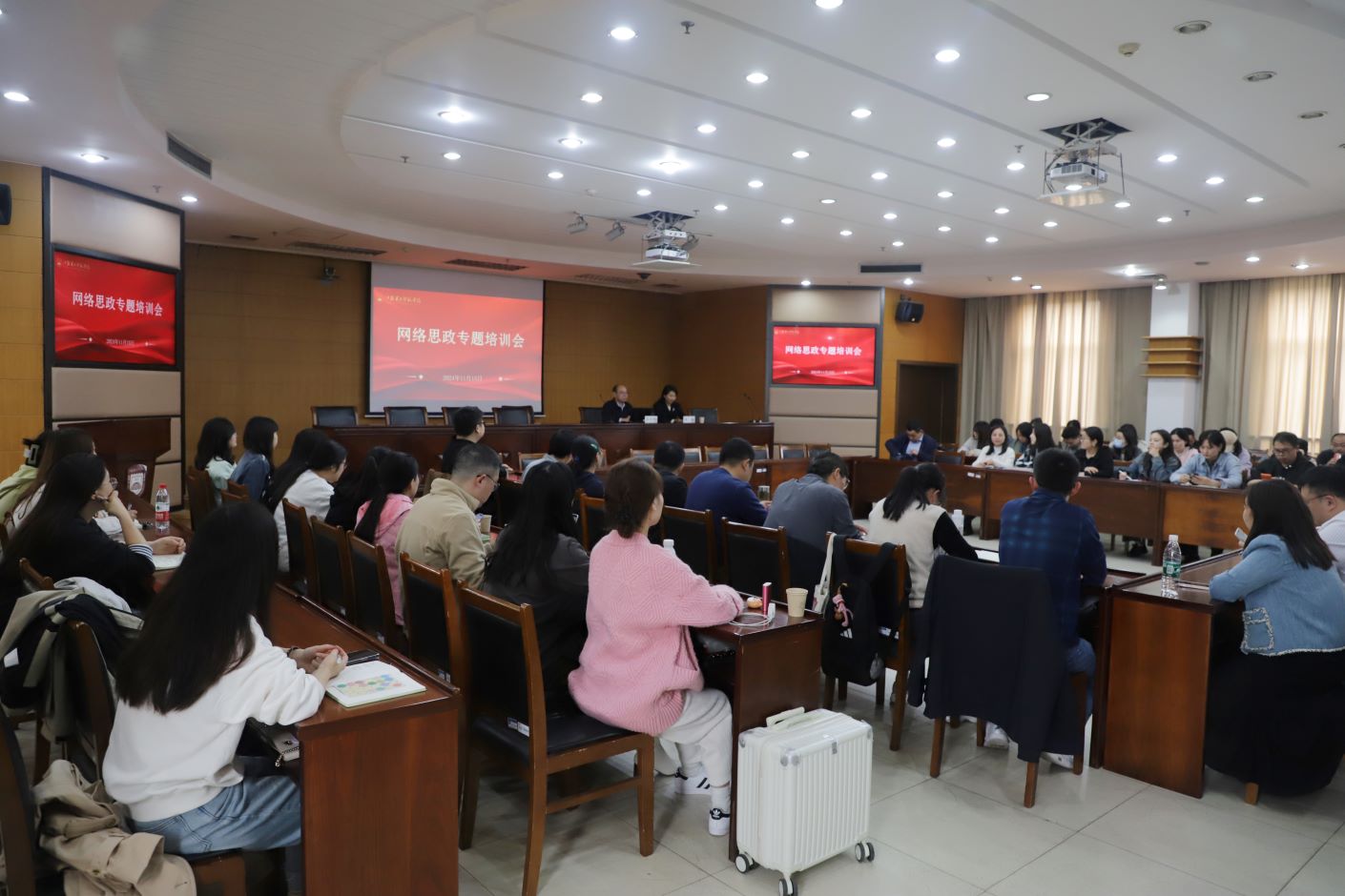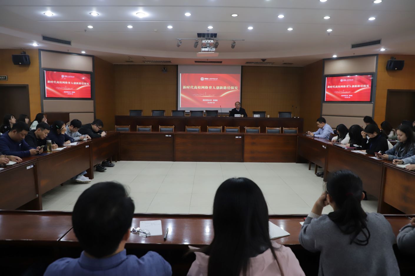 为了深入学习和贯彻习近平总书记关于互联网时代思政工作的新指示新要求,落实立德树人根本任务,不断培育优质思政项目,提升我校师生思政活动成果成效,近日,我校在草场门校区511会议室举办网络思政工作专题培训会。党委宣传部邀请了全国高校网络教育名师、教育部高校思想政治工作队伍培训研修中心办公室副主任、江苏省高校网络思想政治工作中心副主任、南京师范大学党委保卫部部长蔡炳锋博士作《新时代高校网络育人创新路径探究》报告。我校各二级学院党总支书记、副书记、辅导员、宣传员,党委宣传部及学工部教师参加了培训会,培训会由党委宣传部副部长王艳主持。