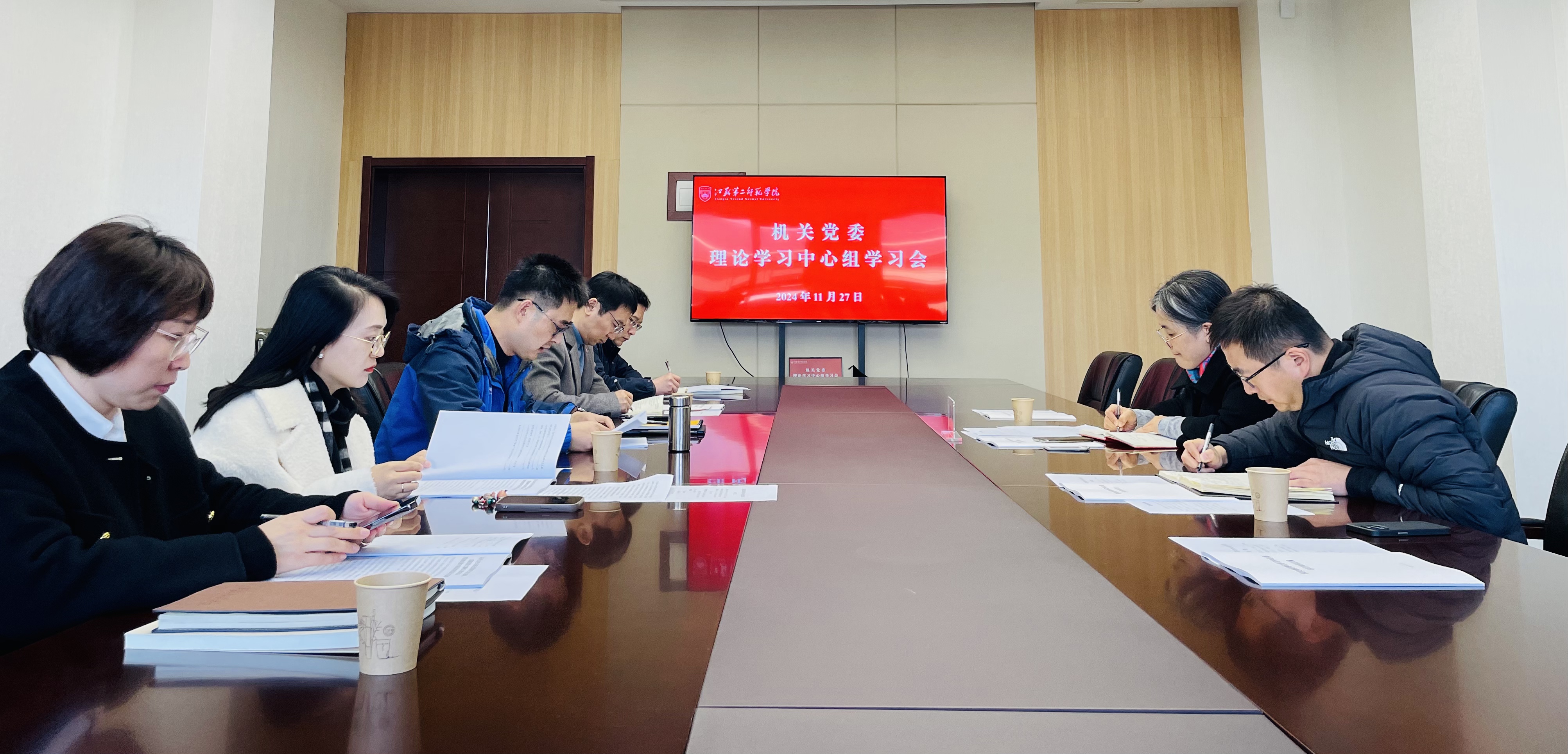 11月27日下午,机关党委理论学习中心组举行学习会,围绕习近平总书记关于教育的重要论述开展专题学习研讨,理论学习中心组成员参会,校巡学旁听工作组组长赵玉蓉及工作组成员出席会议。