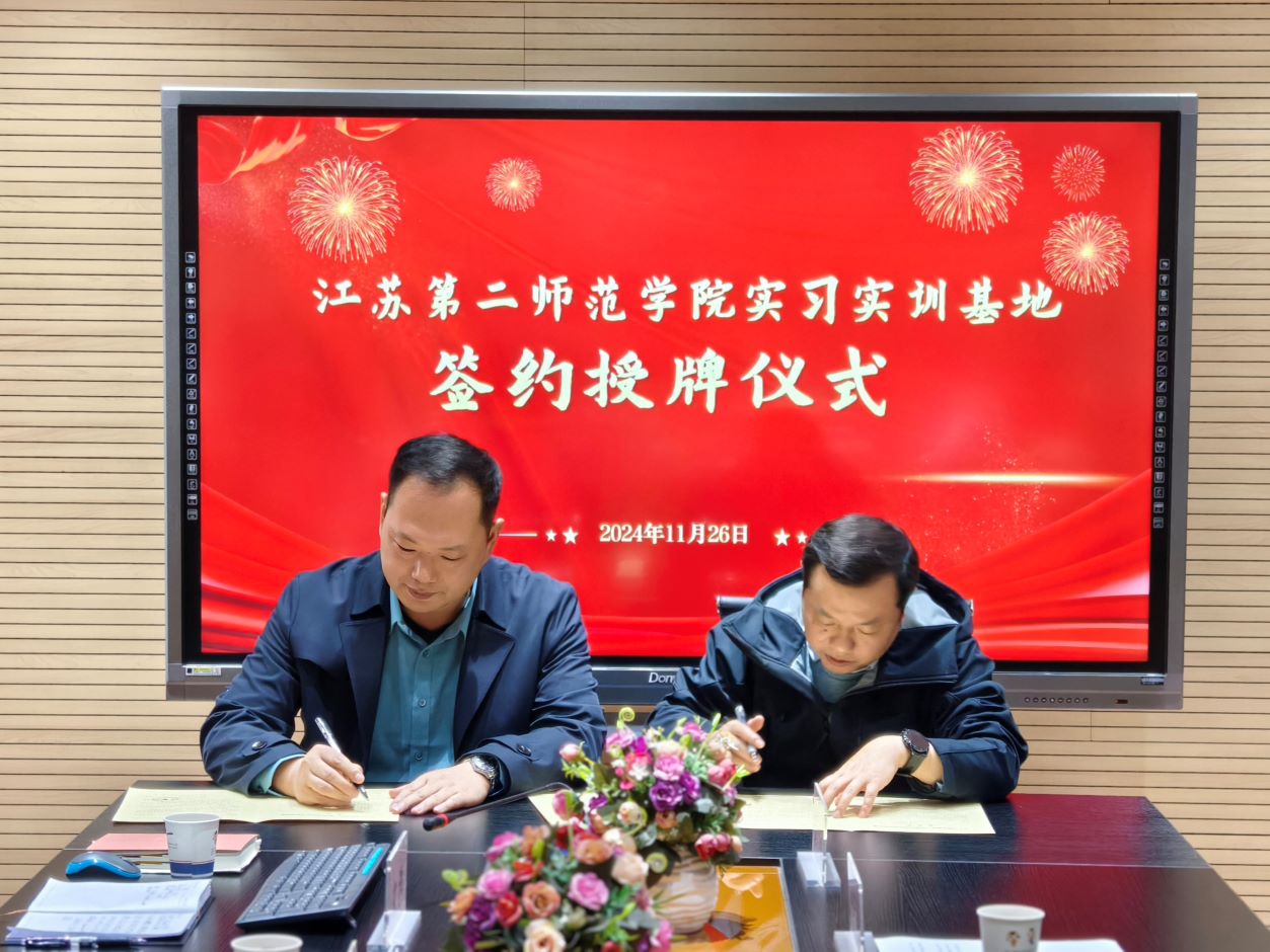 联学活动结束后,音乐学院与江北新区少年宫签订《江苏第二师范学院实习实训协议》,并为“大学生实践基地”揭牌。