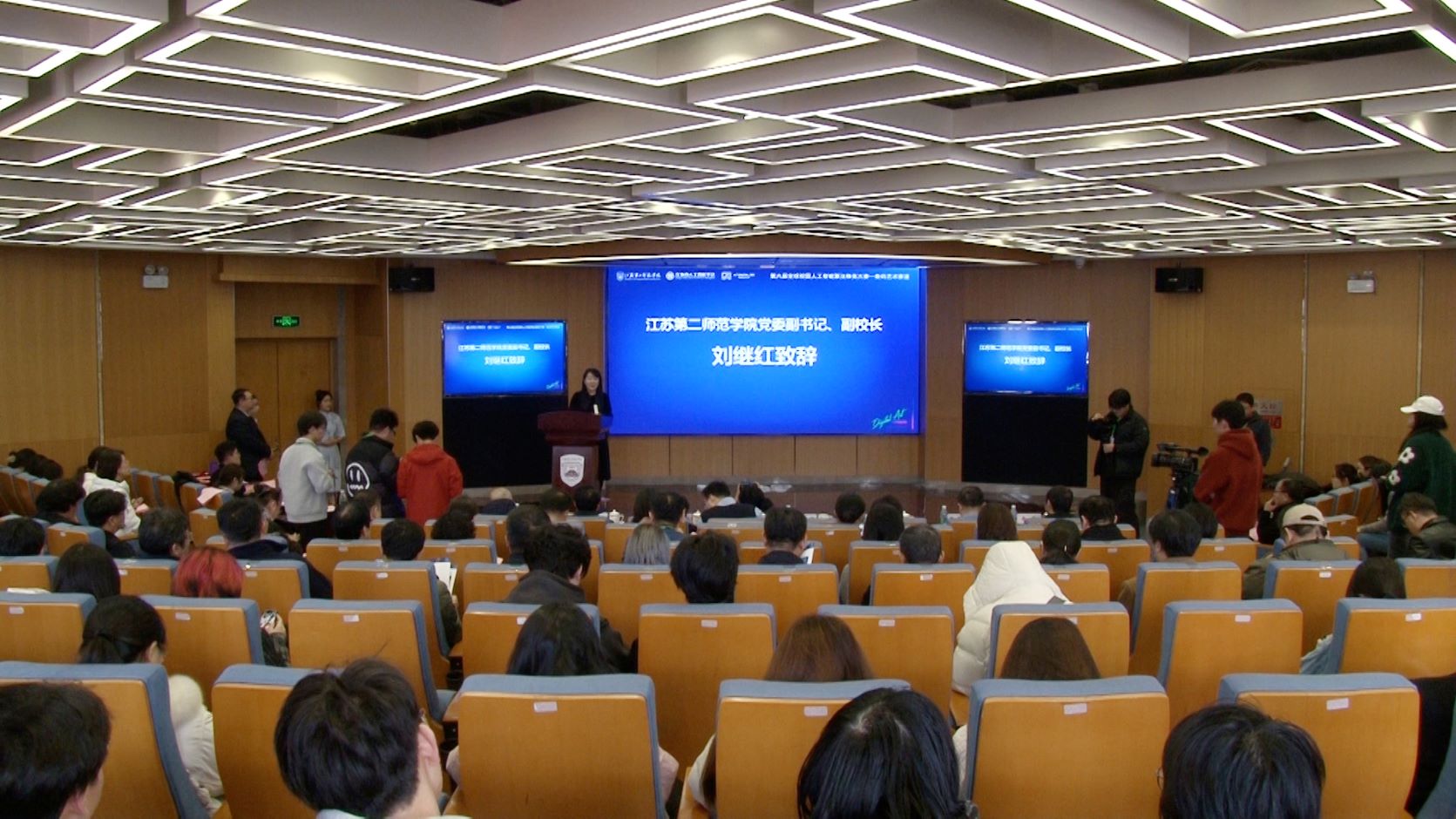 刘继红在大会致辞。她指出,在教育领域,数字化正引领世界教育变革新风向,“人工智能+教育”带来了教学模式和人才培养模式的根本性变革,人工智能将对教育产生深远影响。江苏第二师范学院正积极加强人工智能专业建设和人工智能教育,筹建人工智能学院,努力培养面向未来、具有人工智能素养的卓越人才。