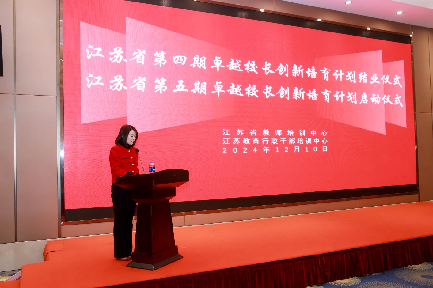 随着第四期计划的圆满结束,第五期卓越校长创新培育计划也正式启动。南京航空航天大学附属高级中学校长王兰作为第五期学员代表发言,她表达了对今后一年研修的期待和信心,表示将全力以赴,不断提升自身教育管理水平,为江苏教育事业的发展贡献力量。