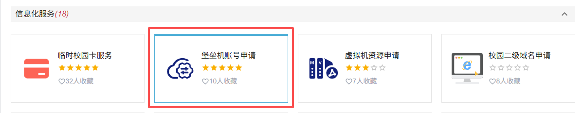 登录办事大厅,在“信息化服务”中找到“堡垒机账号申请”,点击即可进行申请。