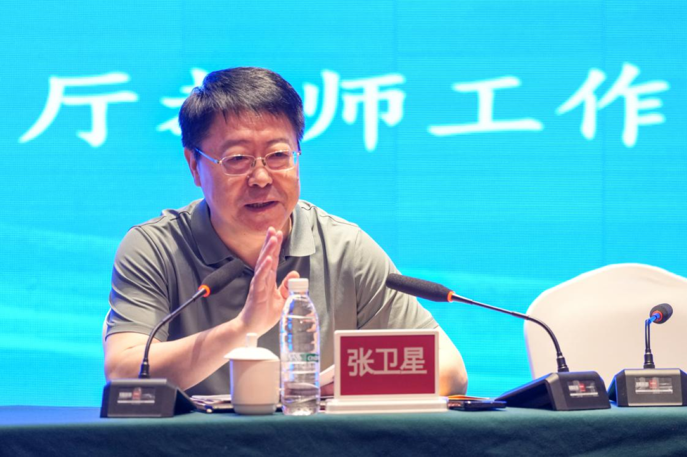 张卫星以《江苏师德师风建设的实践与思考》为题作主旨报告。他从新时代加强师德师风建设的战略意义、制度保障体系与实践创新路径三个方面进行了系统阐述,全面梳理了江苏在教师队伍思想政治引领、职业道德规范、典型示范引路与师德监督机制等方面的探索成果。