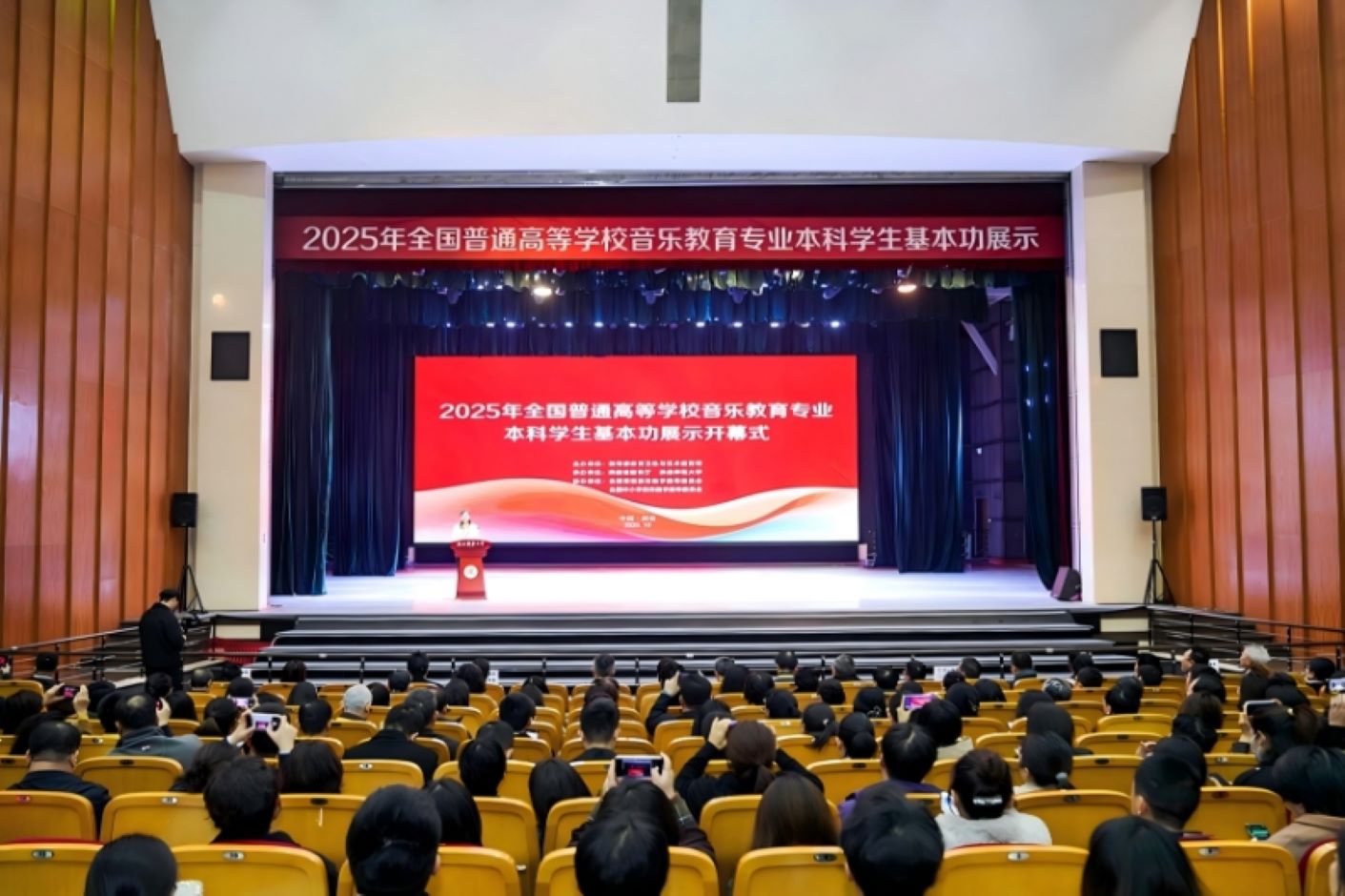 10月27日,2025年全国普通高等学校音乐教育专业本科学生基本功展示在陕西师范大学开幕。此次基本功展示由教育部体育卫生与艺术教育司主办,教育部体育卫生与艺术教育司一级巡视员郝风林出席开幕式并讲话。我校音乐学院1名教师、3名学生参加本次展示,其中音乐学院学生田佳锋作为全国参赛学生代表在开幕式上发言。