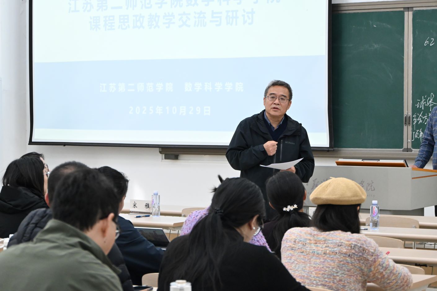 为深入贯彻《江苏第二师范学院课程思政工作实施办法》的各项要求,加强新时代江苏第二师范学院课程思政建设,推动课程思政工作走深走实,10月29日下午,数学科学学院在石湫校区博学楼1-110教室成功举办“课程思政教学交流与研讨”活动。原党委常委、统战部部长周群,教务处宋雅,马克思主义学院沈振东应邀出席,学院全体教师参加研讨。活动由数学科学学院陈波主持。