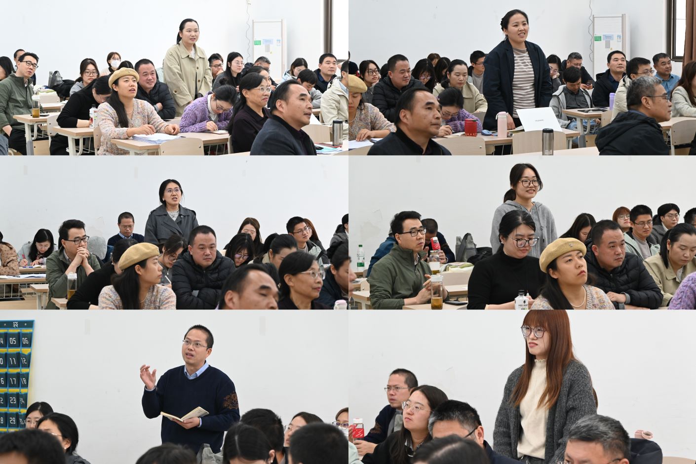 第三阶段,徐新萍老师以2024年省级课程思政示范案例《高等代数》为例,分享课程思政建设经验。她详细介绍了课程目标定位、教学内容重构、评价方式优化等方面的实践,通过“知识点+思政点”双线设计,为教师们提供了可复制的思政教学方案。在交流环节,教师们就案例申报、资源整合等问题进行了深入探讨,专家团队鼓励学院持续打造具有数学特色的课程思政品牌。