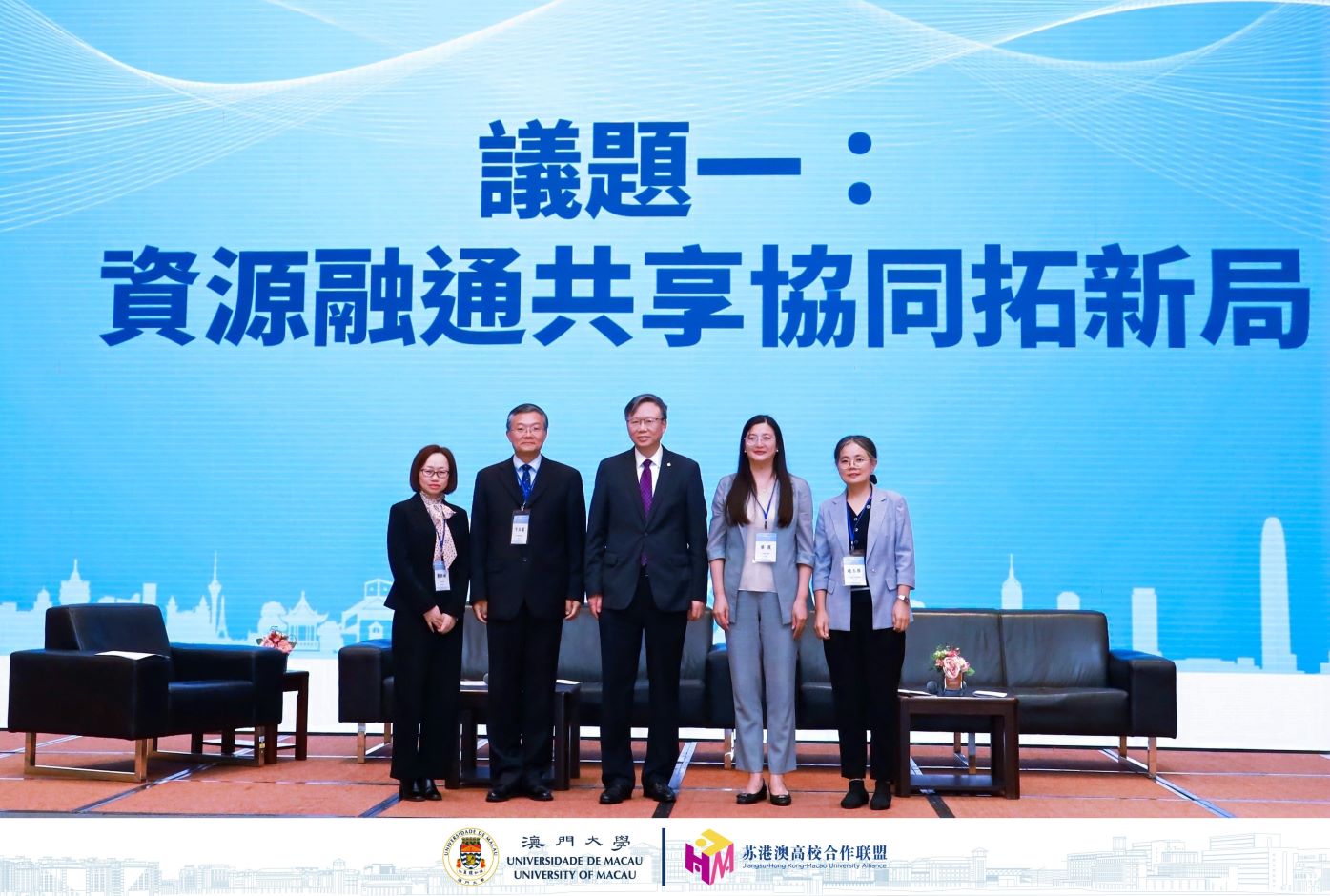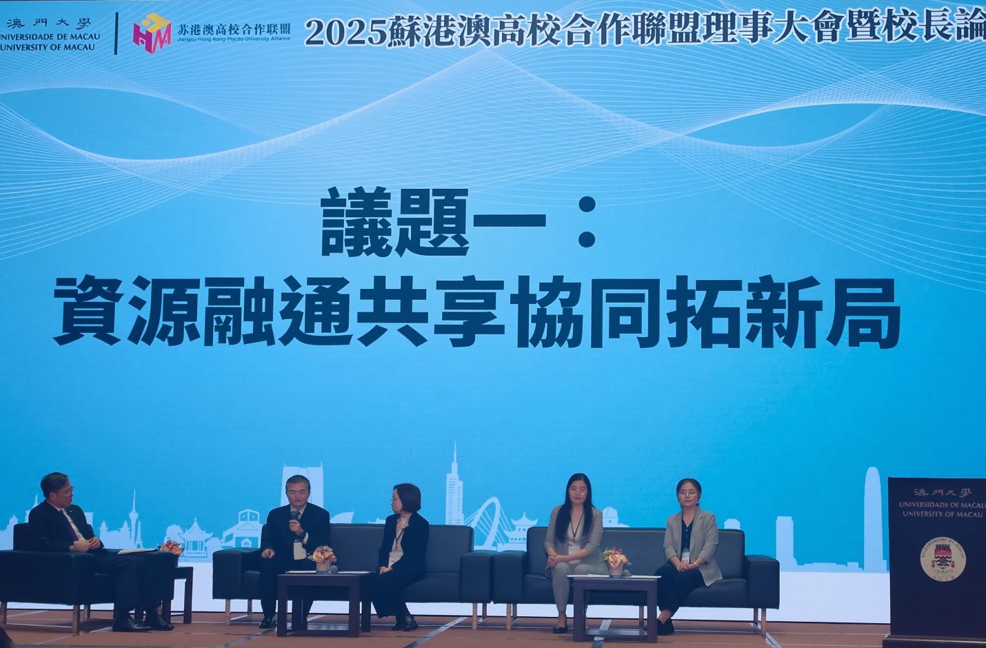 2025年10月31日,“高校联盟聚合力 开放共享促多赢”2025苏港澳高校合作联盟常务理事会、理事大会暨校长论坛在澳门大学举行,苏港澳三地50余所高校代表参会。我校党委常委、副校长赵玉蓉受邀出席并在“资源融通共享 协同拓新局”议题中发言。港澳台事务办公室主任梁婧玉陪同参会。