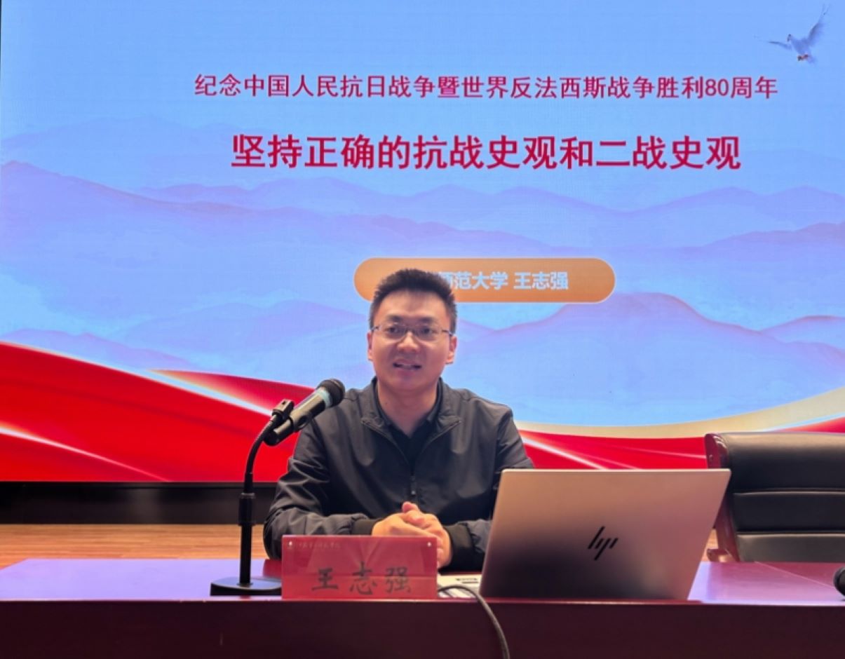 开班式后,王志强为参训学员讲授开班第一课,作题为《纪念中国人民抗日战争暨世界反法西斯战争胜利80周年——坚持正确的抗战史观和二战史观》专题辅导报告,对抗战史观和二战史观进行了深入细致的解读,为学员准确把握抗战精神实质、树立正确历史观提供了指引,激励学员从历史中汲取奋进力量,在新时代新征程上勇担使命、砥砺前行。