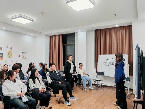 参观结束后,同学们来到团体辅导室,聆听心理健康协会带来的科普宣讲。宣讲员从心理学基础概念切入,深入讲解心理健康的核心内涵,说明了心理咨询的流程和团体辅导的形式。宣讲员还向同学们分享了实用的心理健康小贴士,让大家对“心理支持”有了系统认知。讲解过程中穿插“姓名连环”“你来我往”“你画我猜”“快问快答”等互动环节,既活跃了氛围,也让心理健康知识更易记忆和理解。活动最后,心协同学为每位参与者送上明信片,大家写下活动感悟和个人心愿,定格这段难忘的体验。