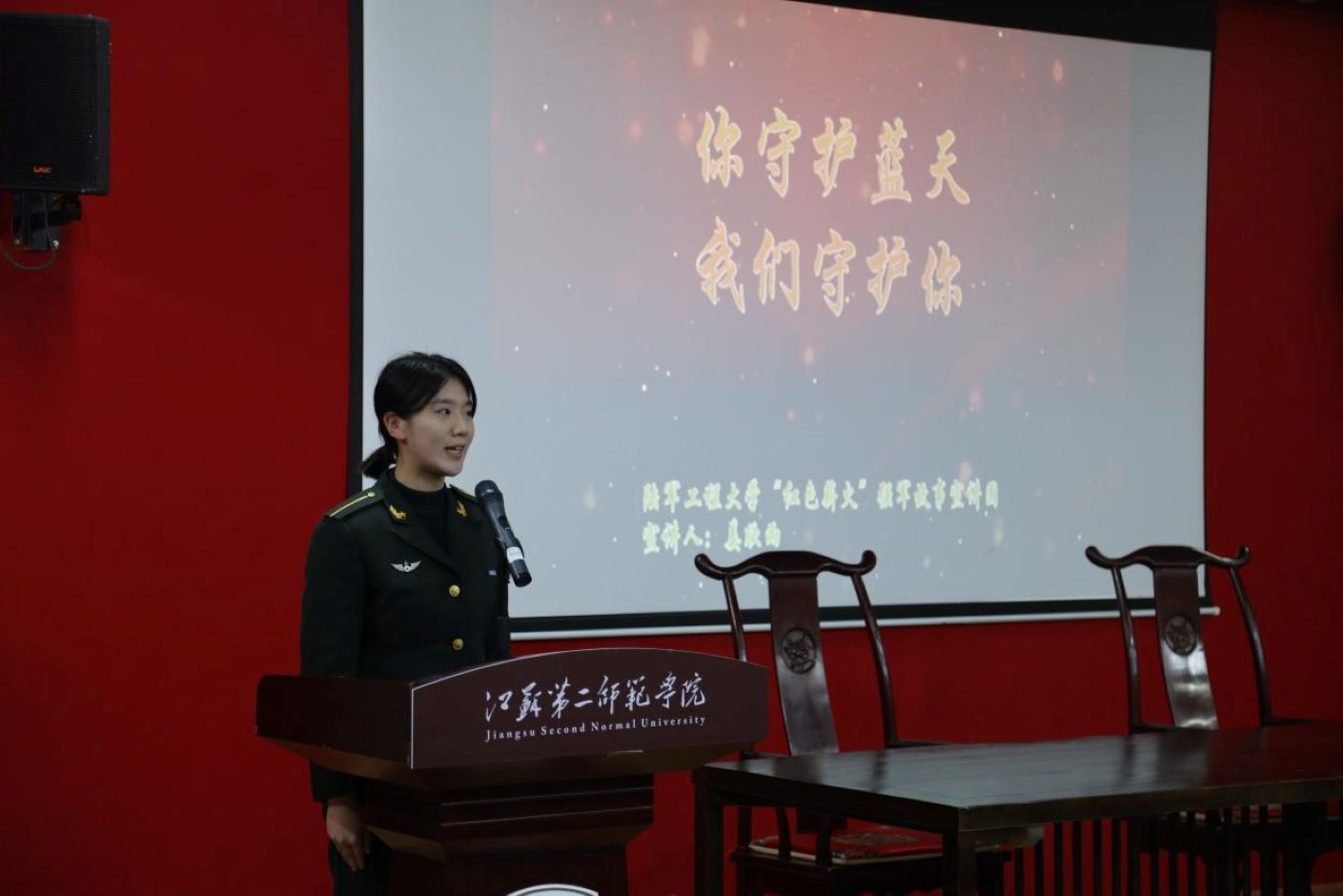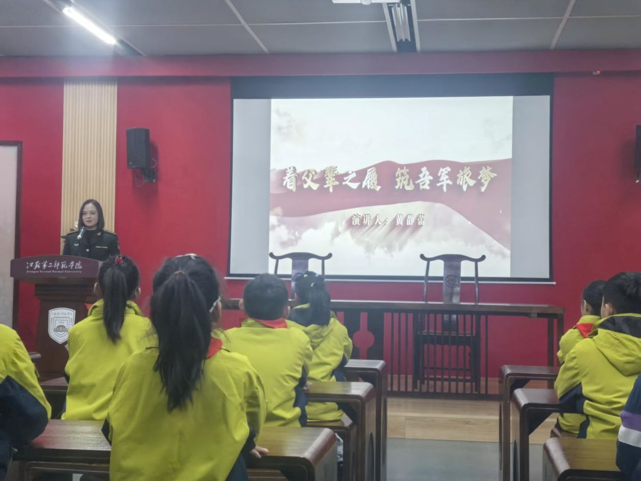 在“立报国志、扬爱国情、践强国行” 活动阶段,特别邀请了陆军工程大学“红色薪火”强军故事宣讲团同学开展精彩宣讲。姜欣雨同学以《你守护蓝天,我们守护你》为题,分享了父辈的军旅故事,如今她也身着军装传承爱国奉献精神,让红色薪火代代相传。黄静蕾同学带来《着父辈之履 筑吾军旅梦》的深情讲述,以父亲的“军靴”为线索,串联起父亲从南疆戍边、维和战场的坚守足迹。如今她也坚定选择从军报国,生动诠释了责任与传承的真谛。我校学生蒋卓茜以《128步正步映山河——我的阅兵故事与青春担当》分享了自己的成长感悟。她曾入伍中国人民解放军仪仗司礼大队,参与9·3胜利日阅兵,在长安街上走出128步庄严正步,用青春践行“为祖国担当”的誓言。三场宣讲情真意切、催人奋进,让在场师生深受触动,深刻体悟到家国情怀与青春担当的深刻内涵。