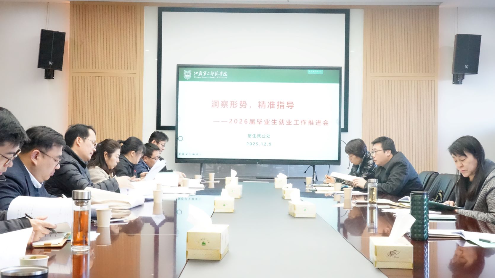 12月9日下午,我校在石湫校区崇德楼318会议室召开2026届毕业生就业工作推进会,部署和推动2026届毕业生就业工作。校党委副书记、副校长刘继红出席会议并讲话,各二级学院就业工作负责人参加会议。会议由招生就业处处长司南主持。