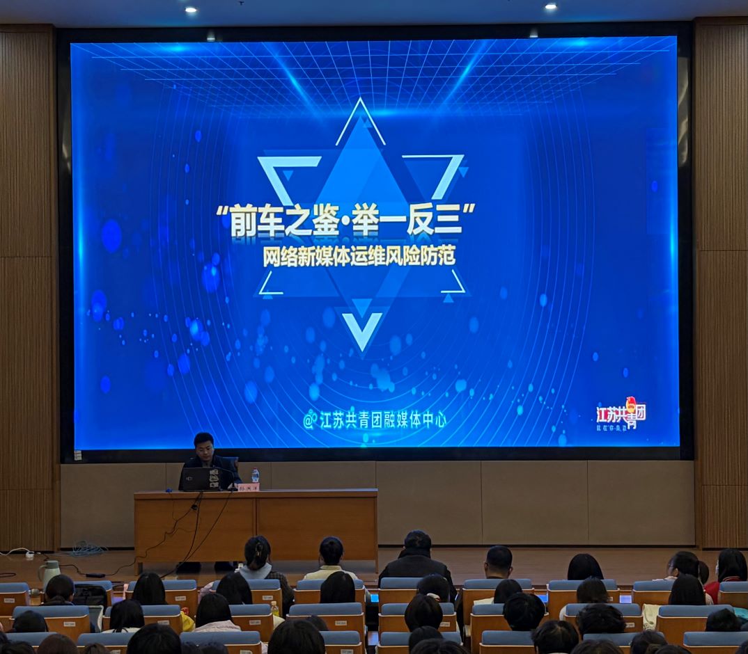 讲座伊始,余鑫详细介绍了孙洪洋主任带领的“江苏共青团”新媒体矩阵运维取得的显著成绩。他指出,高校是培育新时代人才的重要阵地,如何守护好校园网络意识形态安全,有效防范化解高校网络安全风险,是当下亟待解决的关键问题。