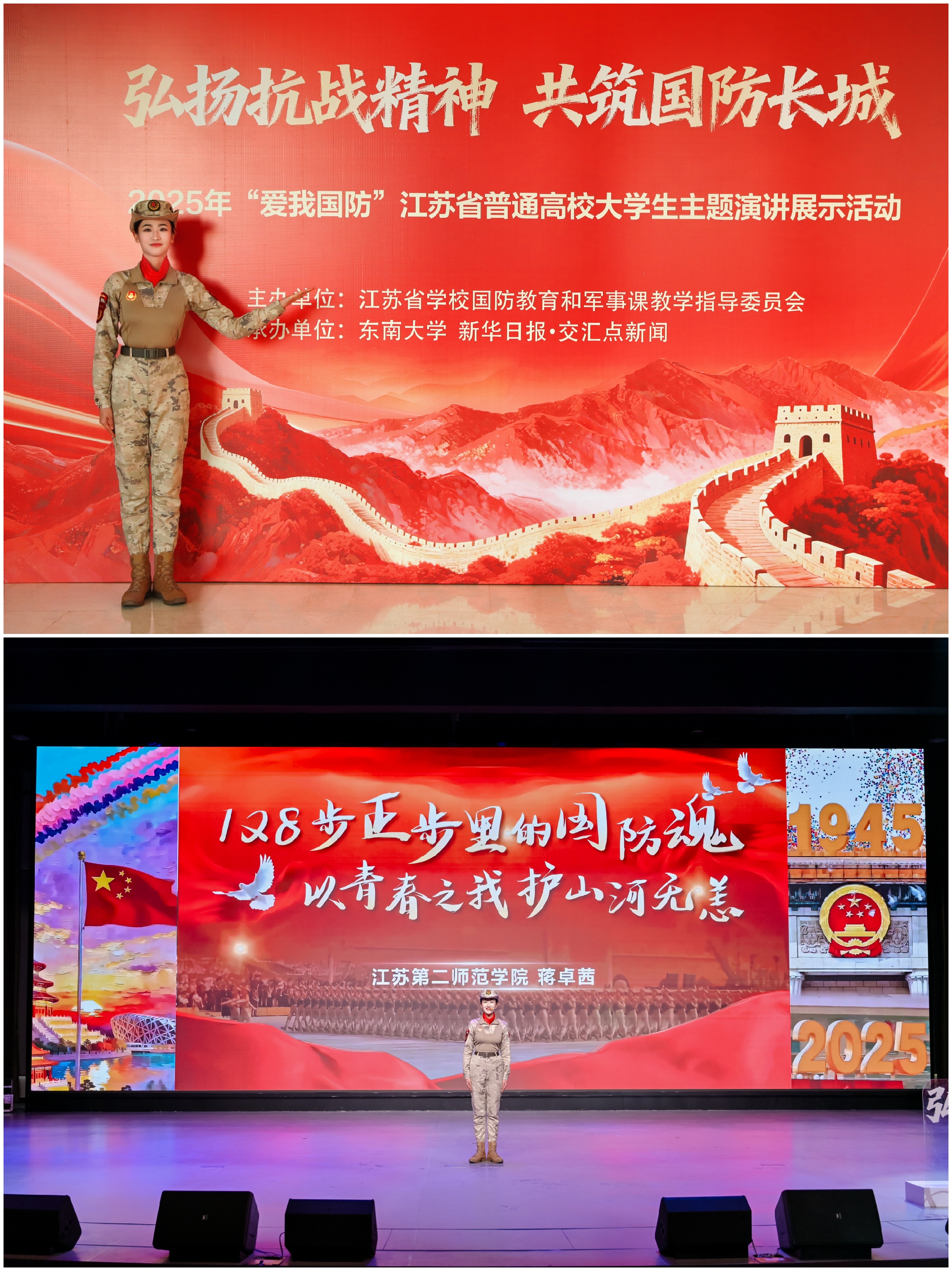 为贯彻落实中共中央、国务院、中央军委印发的《关于加强和改进新时代全民国防教育工作的意见》精神,江苏省学校国防教育和军事课教学指导委员会于2025年10月至2026年1月举办了2025年“爱我国防”江苏省普通高校大学生主题演讲展示活动,活动由东南大学和新华日报·交汇点新闻联合承办。来自全省86所高校的选手报名参加,最终评出24组入围决赛的选手登台展示,他们以赤诚之声诠释国防意义,以鲜活故事传递家国情怀。