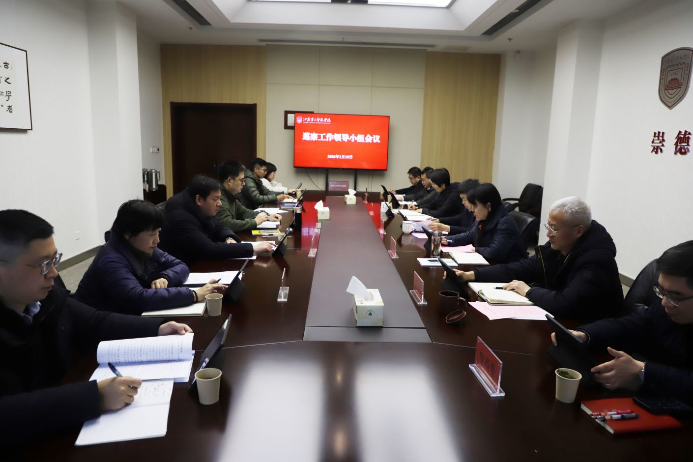 1月19日下午,校党委巡察工作领导小组会议在石湫校区崇德楼319室召开。党委书记、巡察工作领导小组组长兰亚明,校领导刘继红、崔燕、姚振标出席会议。巡察工作领导小组成员、巡察组和巡察办成员参加会议。会议由兰亚明主持。