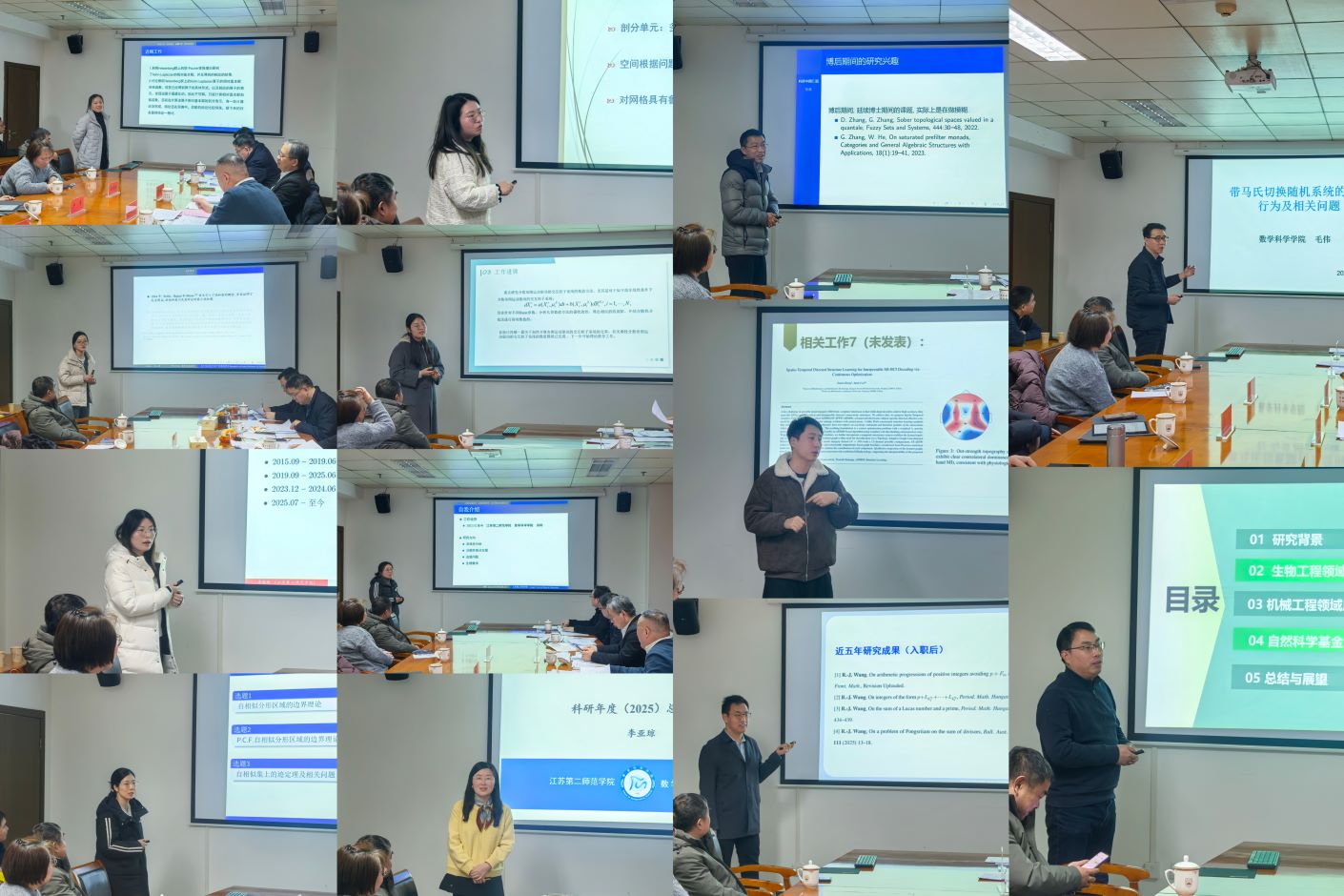 汇报会上,来自不同研究方向的17位博士依次进行汇报,围绕研究课题、研究方法、已取得的成果以及后续的科研规划展开详尽阐述。15位申报2026年国家基金的教师,也就自身拟申报的国家自然科学基金的选题、申报进度、科研现状等内容进行全面汇报。汇报内容涵盖数学基础理论研究、应用数学研究、计算数学与科学工程计算等多个领域。
