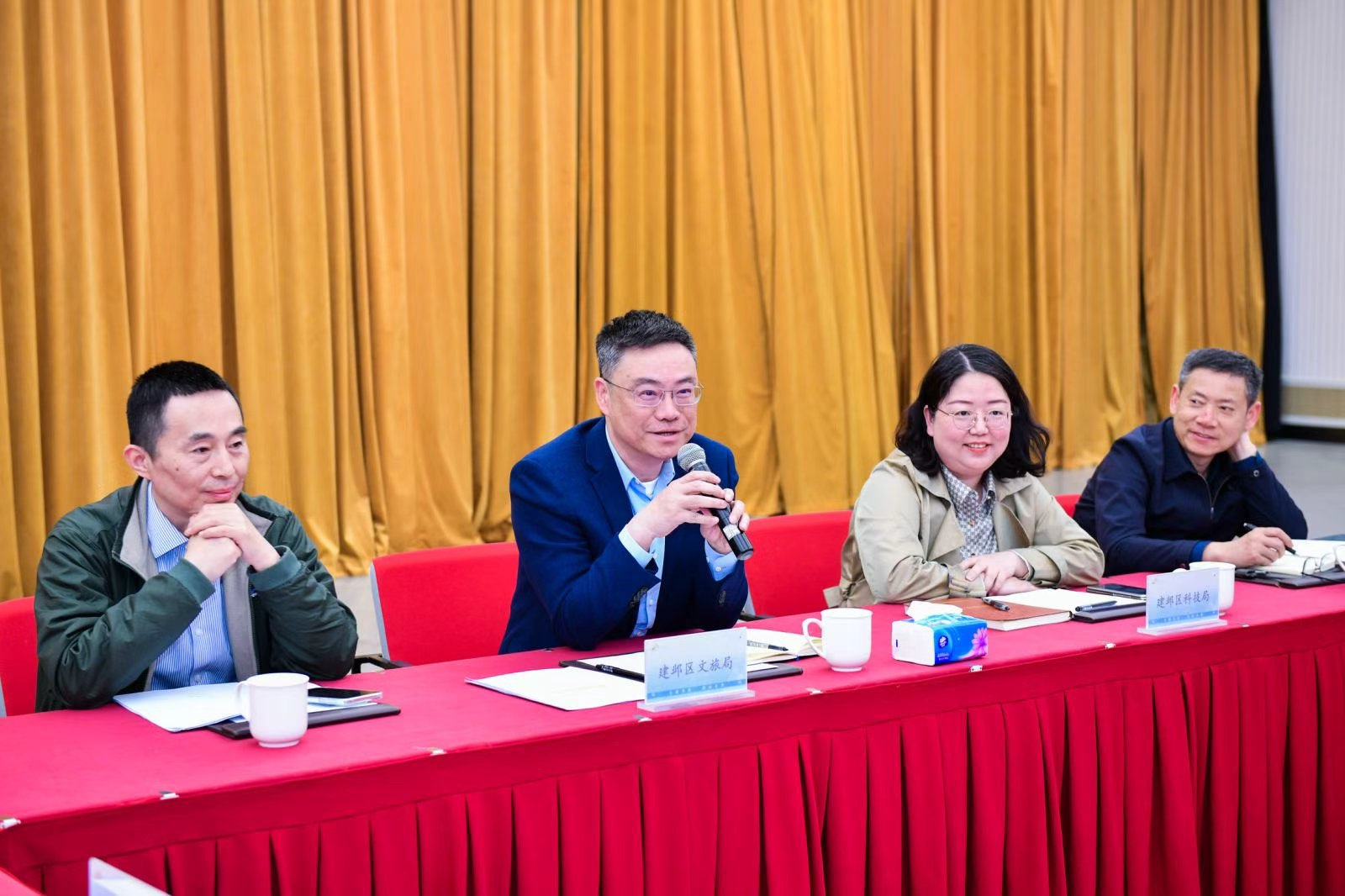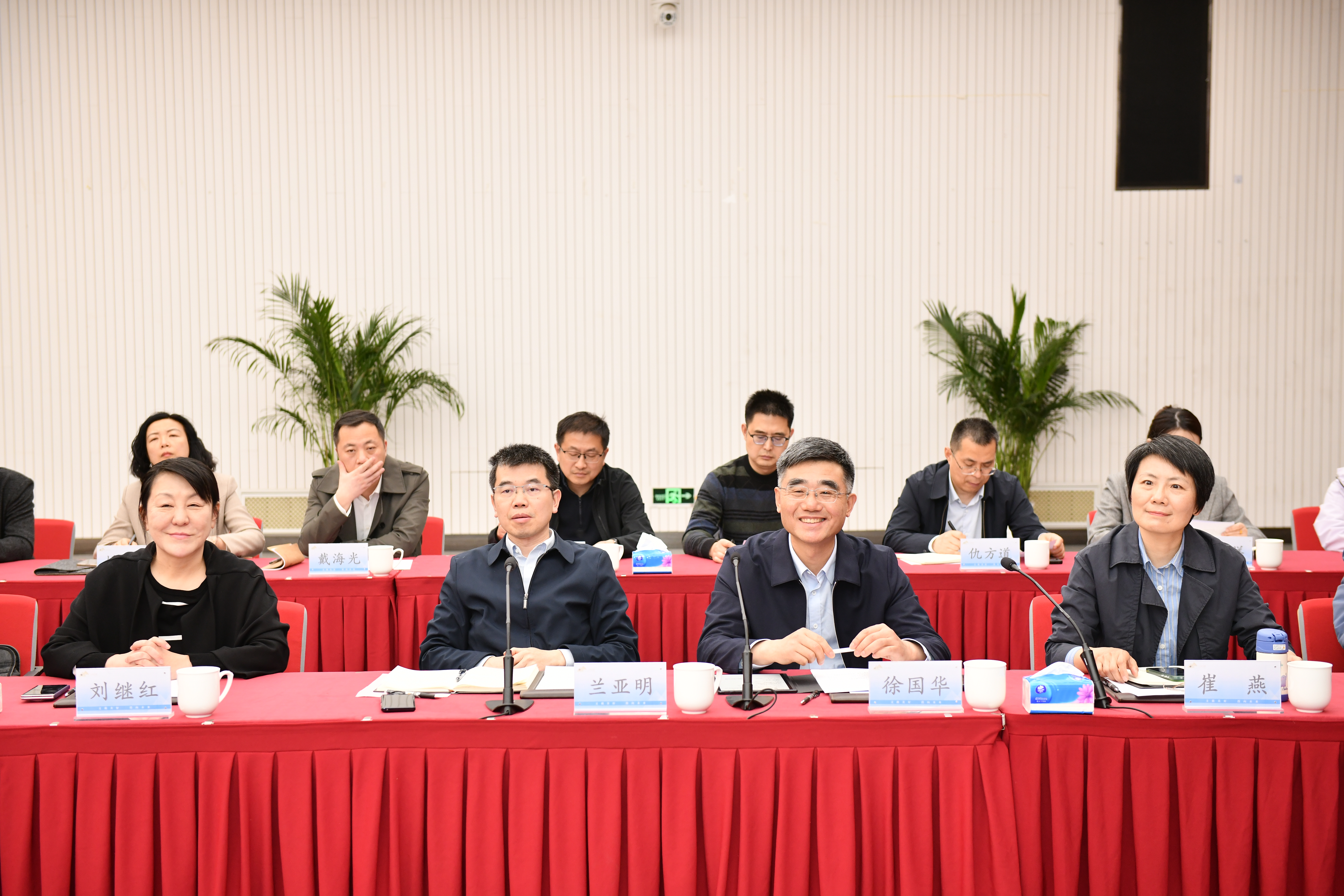 在江苏省文化投资管理集团和江苏紫金文创产业发展有限公司,兰亚明一行与江苏省文投集团总经理、党委副书记毕金标,省文投集团副总经理吴麟童、何猛,江苏紫金文创产业发展有限公司总经理赵新叶、副总经理周敏、总经理助理于淑慧,江苏紫金数科董事长何进、总经理王琳等进行座谈交流。建邺区副区长陈玉铭和区发改委、科技局、文旅局、数据局主要负责同志参加。与会人员围绕文化产业项目攻关、文化成果创新转化、联合创新实验室建设、促进学生就业创业等具体合作事宜进行了深入研讨。兰亚明表示,当前全校上下正在深入开展树立和践行正确政绩观学习教育,这次现场调研就是把学习教育与学校中心工作、与解决师生关注的实际问题结合起来,切实将学习成果转化为学校高质量发展实效。学校在文化产业领域专业布局系统完整、科研平台优势突出、项目资源储备丰富,能够为地方和企业提供高质量的人才支撑、科研创新支撑、实践平台支撑及地域文化资源支撑。他希望未来“校、地、企”三方在以下方面深化合作:探索共建数字文化产业研究院,打造产学研协同创新高地;推动产业学院共建,创新协同育人模式;深化“紫金奖”赛事联动,促进创意成果转化;加强党建共建与资源共享,构建长效合作机制。毕金标等对学校一行表示热烈欢迎,希望双方从具体项目入手,进一步拓展合作方式,找准人才培养与项目协作的结合点和突破口,联动推进实践教学、技术研发、社会服务、艺术创作等工作,实现优势互补、合作共赢。建邺区相关领导表示,希望三方进一步加强校地、校企合作,共同探索文化产业上下游协同发展模式,通过资源共享与优势互补,积极打造文化产业新模式、新业态、新场景,助力区域文化产业高质量发展。