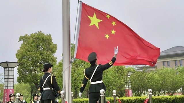 上午七时整,升旗仪式正式拉开帷幕。国旗护卫队队员步履铿锵、英姿飒爽,护卫着鲜艳的五星红旗稳步前行。伴随着雄壮的《义勇军进行曲》,全体师生肃立注目,满怀崇敬与赤诚,目送五星红旗迎着朝阳徐徐升起,高声唱响国歌。