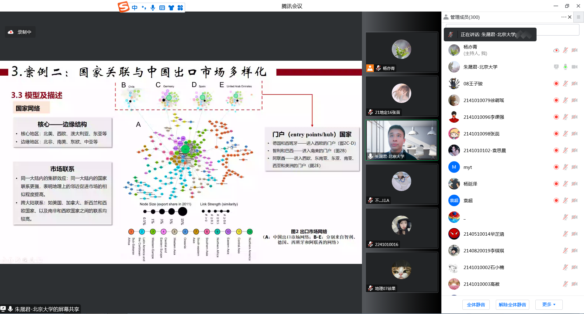 朱晟君,博导,博雅青年学者。入选海外高层次人才(青年),主持国家自然科学基金优青项目。已发表中英文论文100余篇。讲座从关联视角下的全球化与区域发展研究的背景入手展开,用两个经典的案例一一剖析产业关联及城市产业转型,国家关联及出口市场多样化之间的研究成果。朱老师引用大量的经济数据和模型论证如何从产业关联角度思考国内城市对产业的选择?如何从国家关联层面思考研判国内企业更好的选择出口贸易的国家?