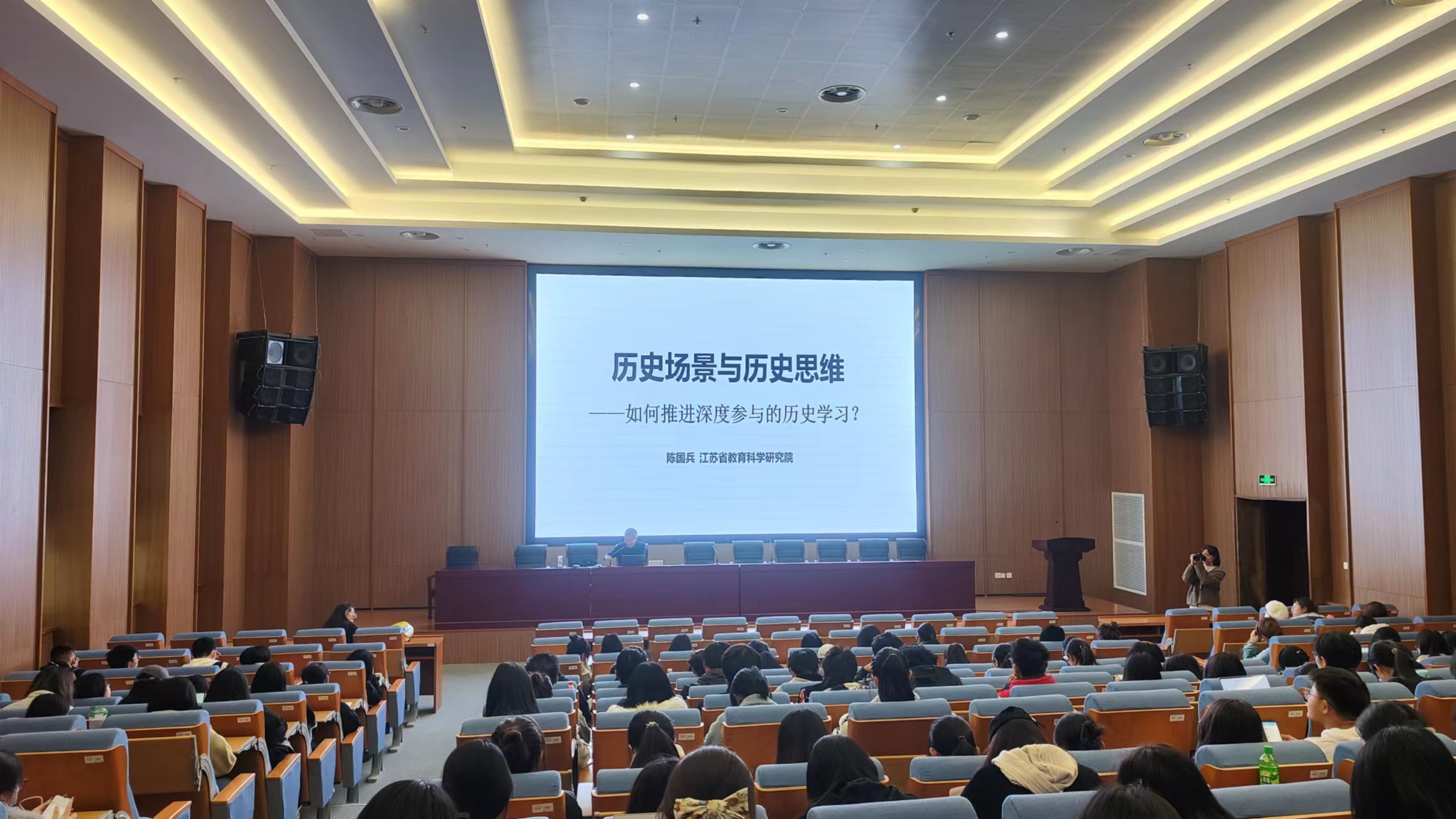为培养同学们的历史思维,以适应新课标下的历史教学方法,11月16日下午马克思主义学院于图书馆二楼报告厅成功举办了“历史场景与历史思维——如何推进深度参与的历史学习”讲座。此次讲座的主讲人是江苏省教育科学研究院的陈国兵教授,共有200多名同学参加。