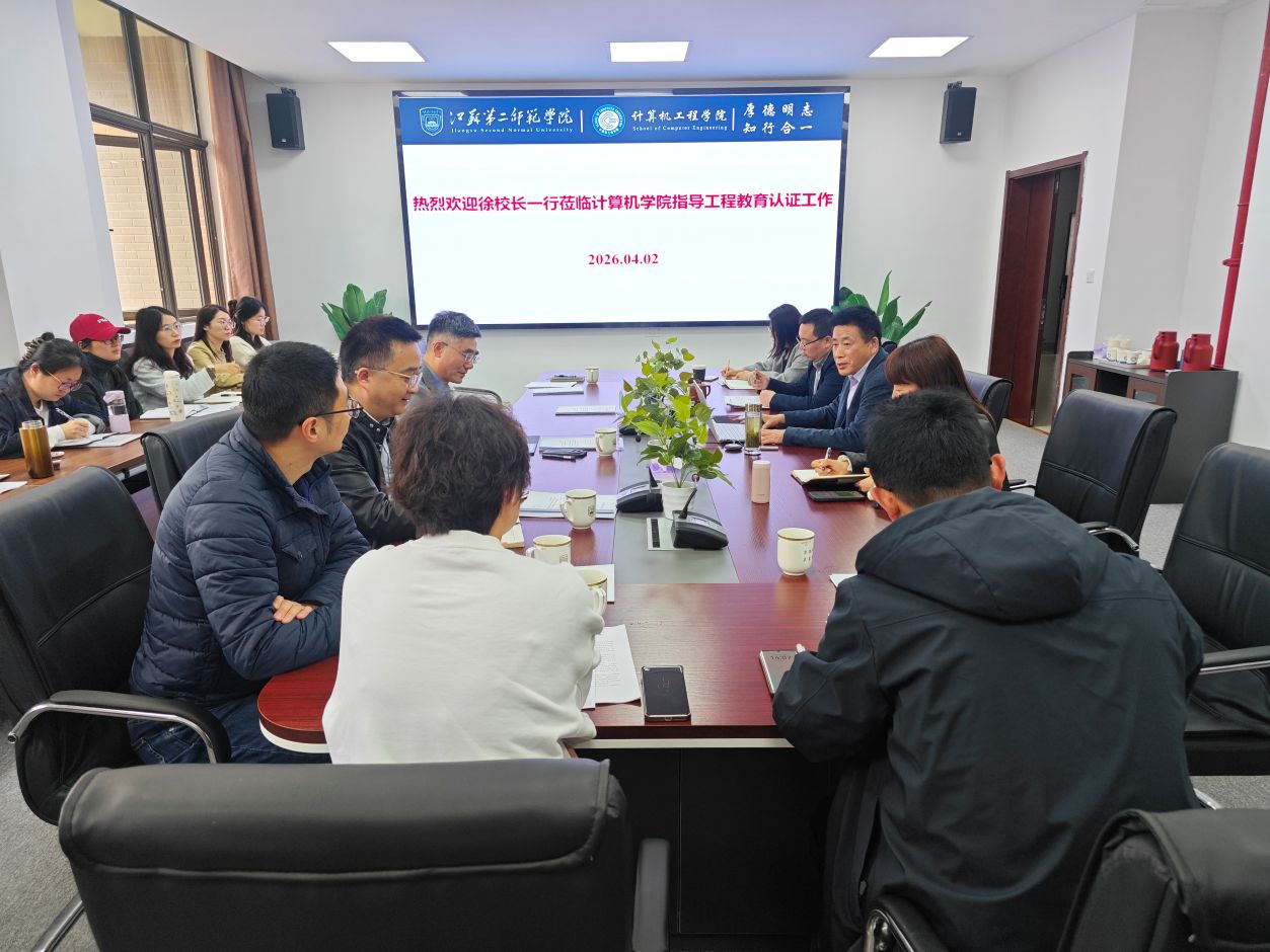 徐国华充分肯定了计算机学院在工程教育认证工作中所作的开拓性努力和取得的阶段性成效。他强调,工程教育认证是学校提升办学水平、增强社会影响力的重要抓手,计算机科学与技术专业作为学校首个通过工程教育认证申请受理的专业,为学校其他本科专业开展国际实质等效的认证工作提供了示范与借鉴。当前,该专业已进入自评阶段这一关键环节,直接关系到认证工作的后续推进。他指出,自评报告既是对专业建设质量的系统检视,也是学校工程教育整体水平的重要体现,计算机学院要严格对标认证标准,进一步打磨自评材料,做到数据精准、逻辑严密、支撑有力。